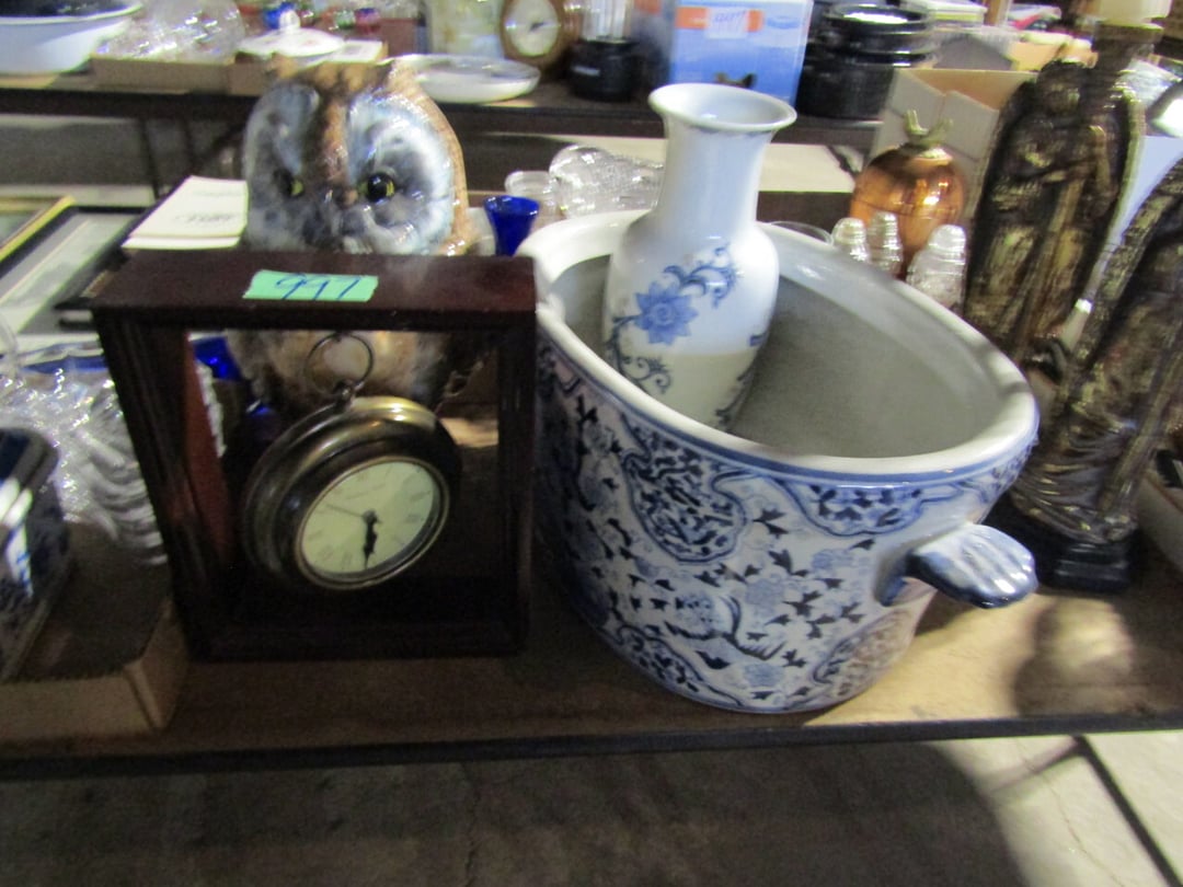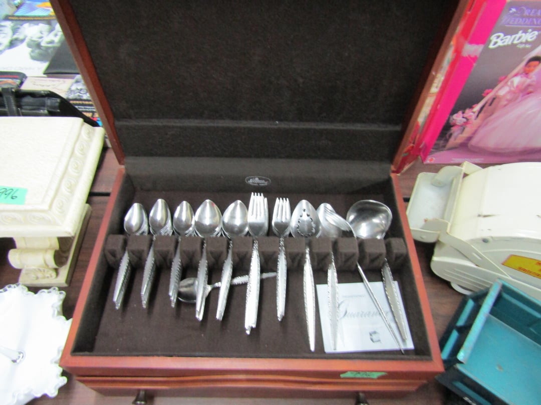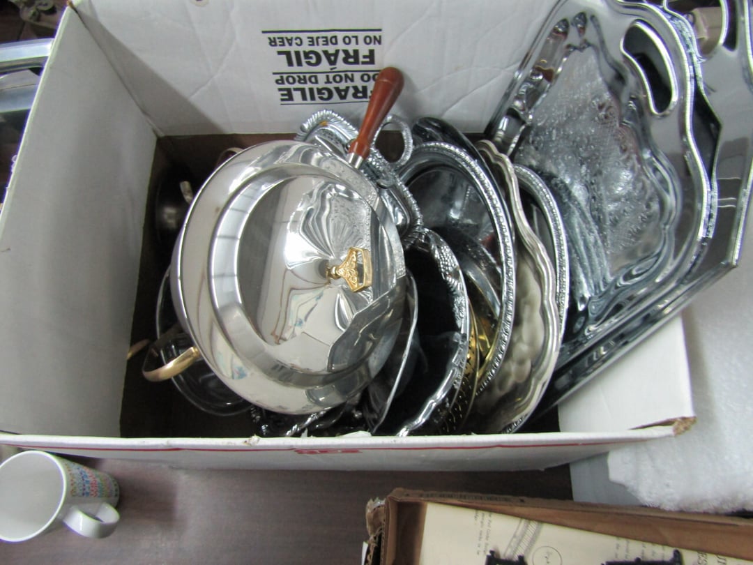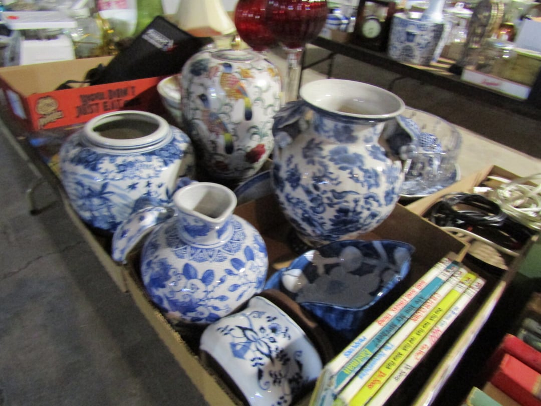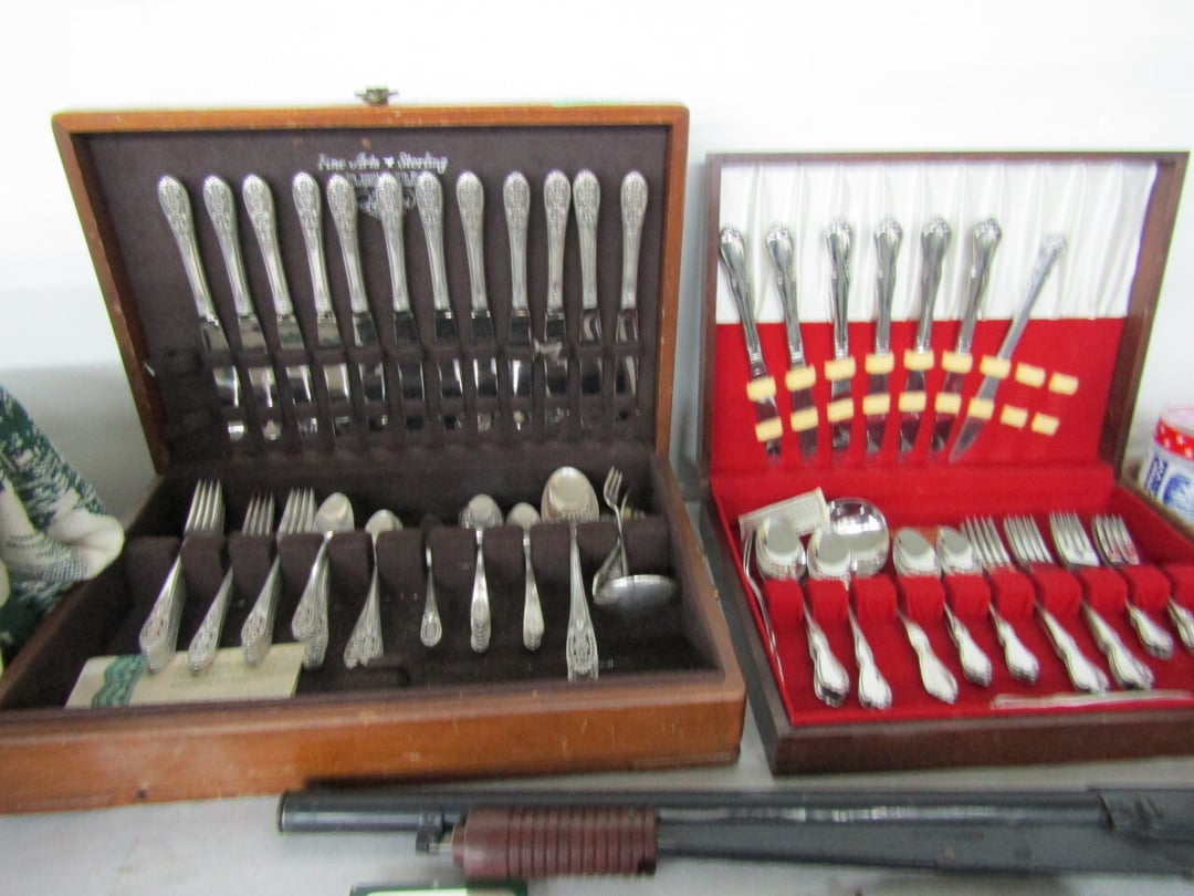 •and bench - Credenza - Fur Coat (Pappas - FW) - Ms America Divided Plate - Silver & Silver Plate - Flatware - Steins - 78 pc Homer Laughlin China (Georgian) - 95 pc Lenox China (Poppies on Blue) - Service for 6 Noritake China (Savannah) - Service for 10 Imperial China (Whitney) - Pfaltzgraff Winterberry Service for 8 - Crystal Pieces - Misc. dishes - (2) GE Fans - New 0.7 CF Microwave - Haier Fridge (9.8 Cu. Ft) - Maytag Sq Tub Ringer/Washer - Used Dishwasher - (2) Eureka Sweeper - Simplicity Sweeper - Laptops - Ceramic Christmas Tree - Indian Stones - Bluffton HS Yearbooks - Danbury Mint Classic Cars - Structo Cement Mixer