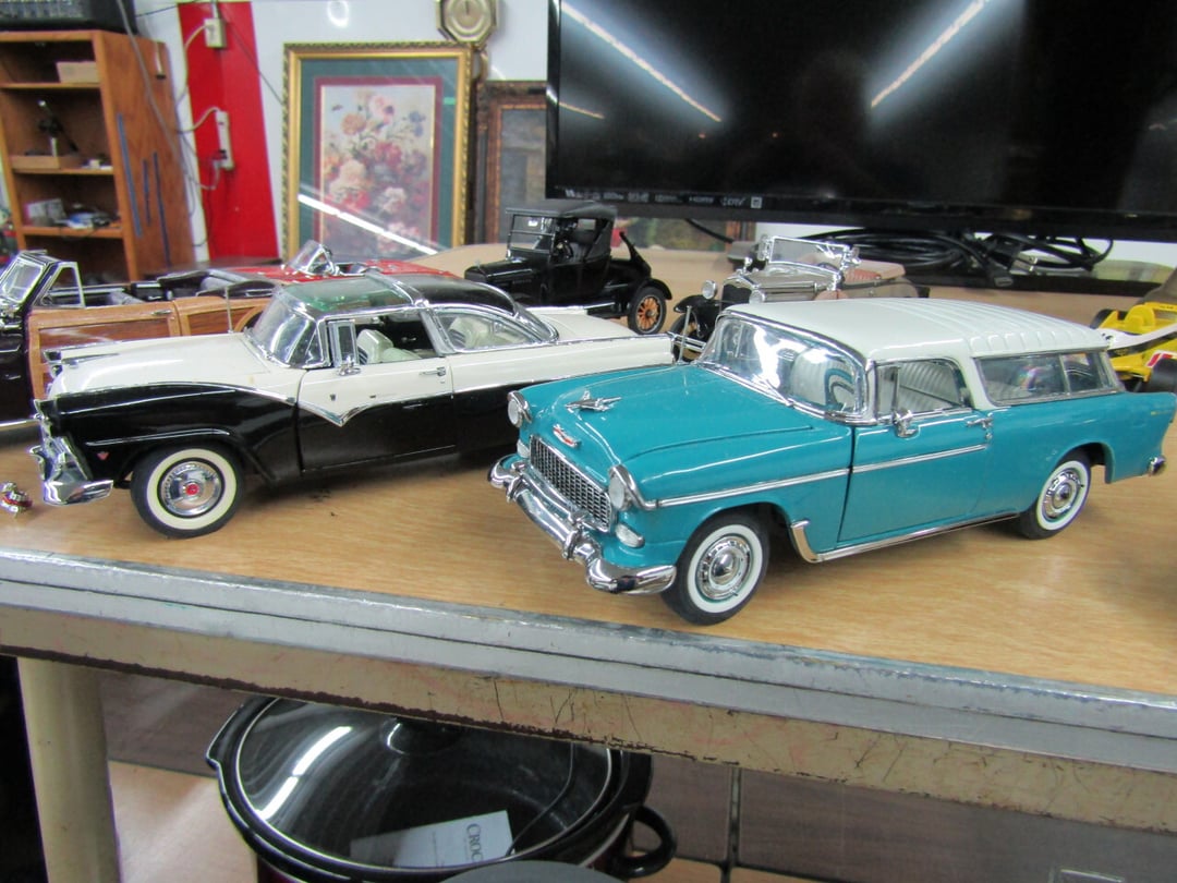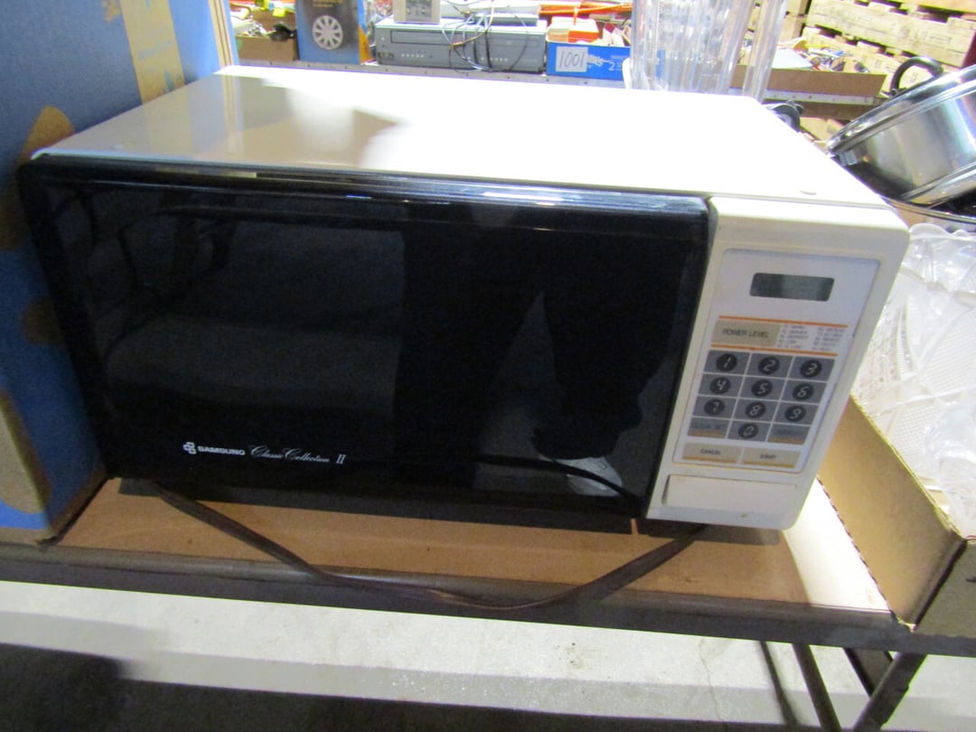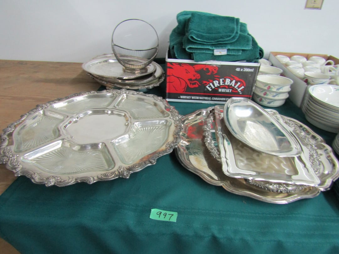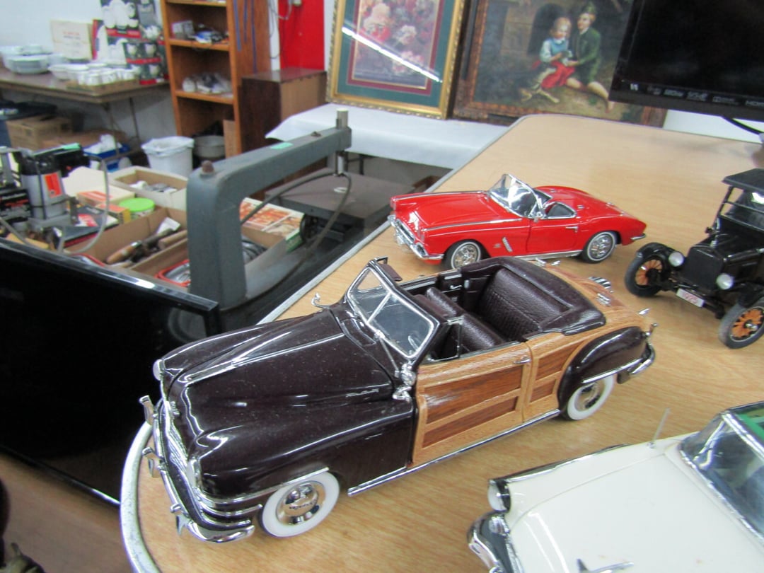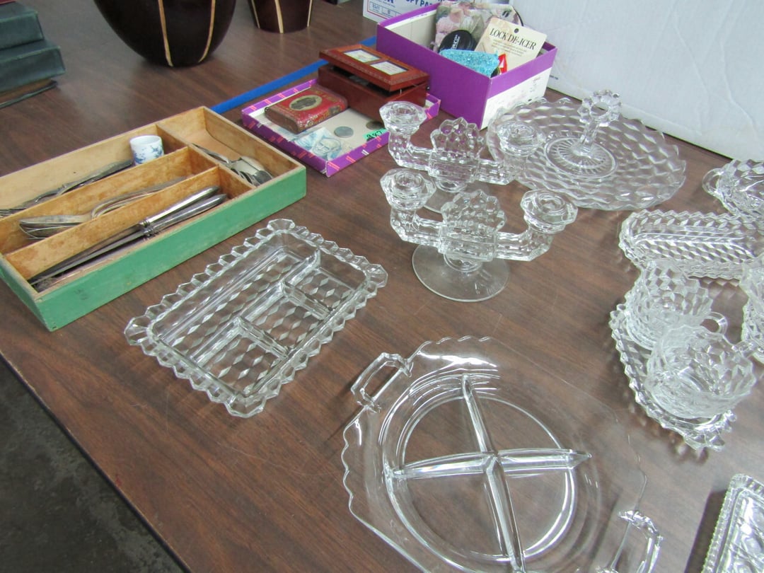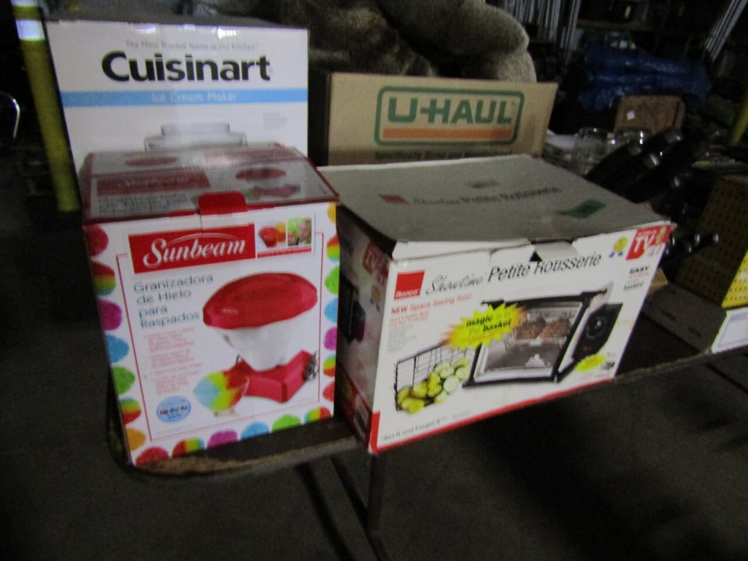 •and bench - Credenza - Fur Coat (Pappas - FW) - Ms America Divided Plate - Silver & Silver Plate - Flatware - Steins - 78 pc Homer Laughlin China (Georgian) - 95 pc Lenox China (Poppies on Blue) - Service for 6 Noritake China (Savannah) - Service for 10 Imperial China (Whitney) - Pfaltzgraff Winterberry Service for 8 - Crystal Pieces - Misc. dishes - (2) GE Fans - New 0.7 CF Microwave - Haier Fridge (9.8 Cu. Ft) - Maytag Sq Tub Ringer/Washer - Used Dishwasher - (2) Eureka Sweeper - Simplicity Sweeper - Laptops - Ceramic Christmas Tree - Indian Stones - Bluffton HS Yearbooks - Danbury Mint Classic Cars - Structo Cement Mixer