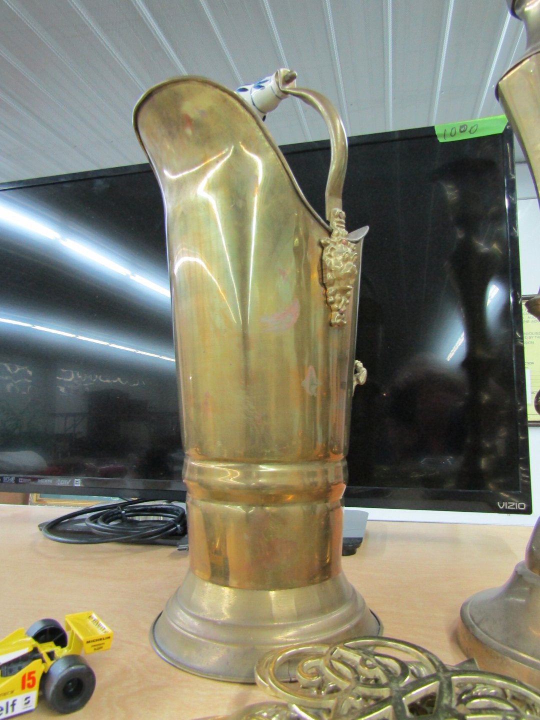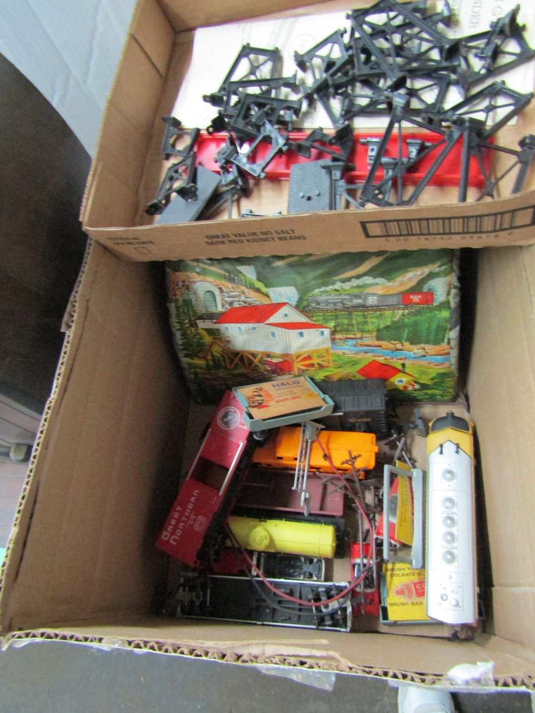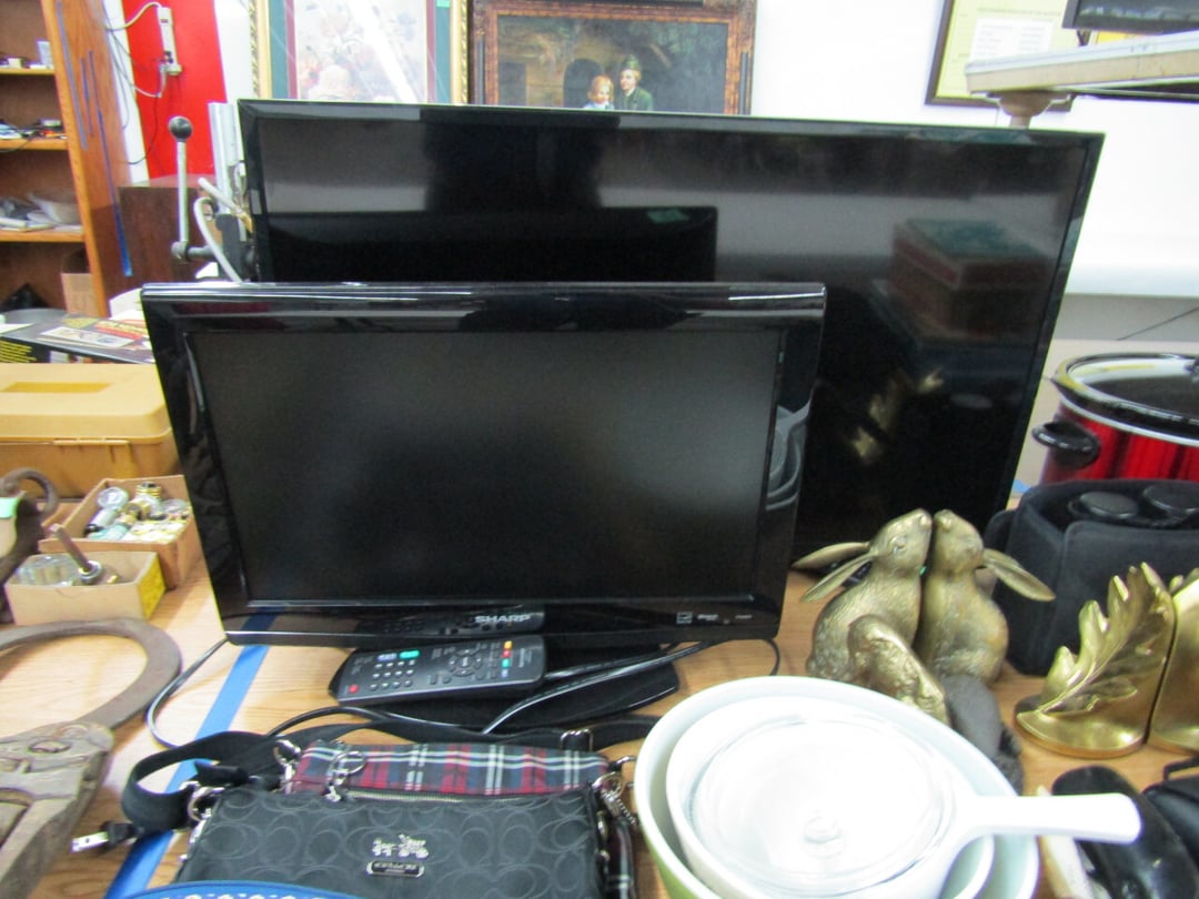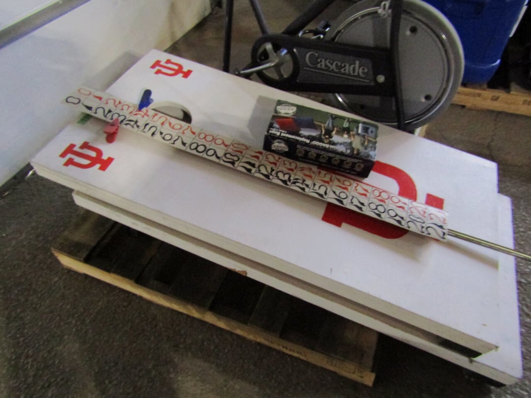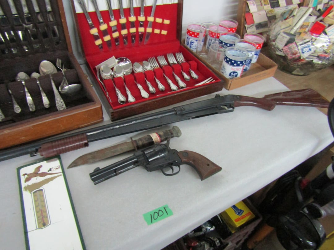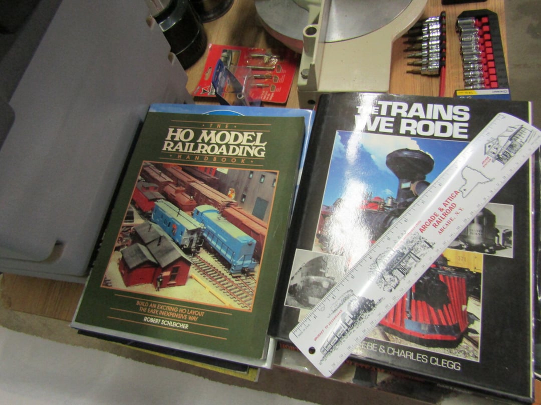 •has co2 tank) - Miller Lite Neon Sign - (21) metal advertisement signs (some double sided) - Beatles Items - Philco Table Top Radio - HO Train - Daisy BB Rifle - Brass Lamps - Matchbook Collection - die cast harley collection - (3) Flat Screens - Electronics - "Lead Glass" Butterfly - Gilbert Electric Set - Red Lightning Rod Balls - Brass Bookends - Box Car Mover - Budda Statue - Shirley Temple Pitcher - Old License Plates - Plastic Gum Ball Machine - Mt Dew Cooler - misc knickknacks - Cot - Sleeping Bag - Blankets