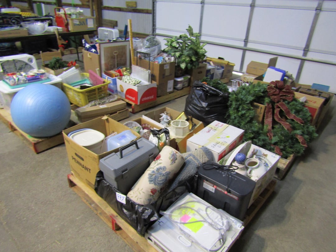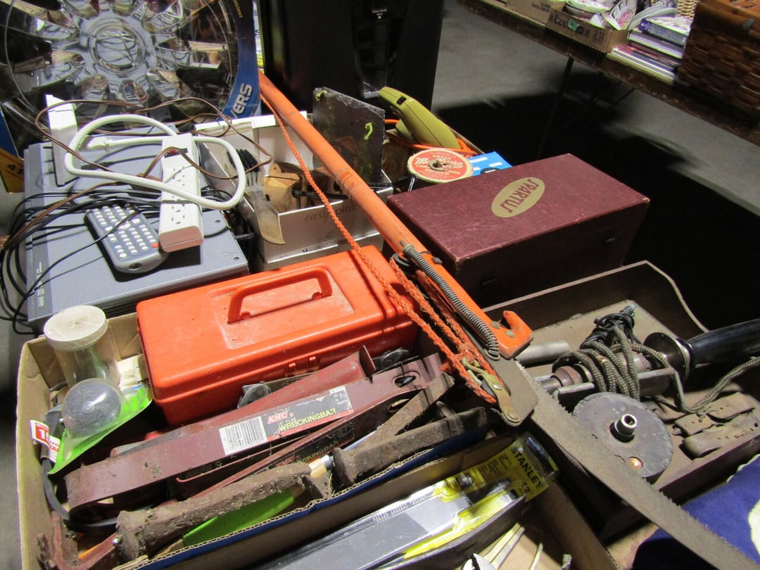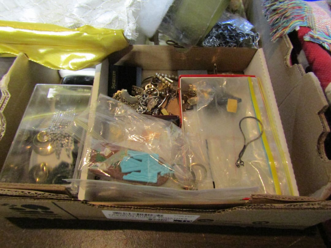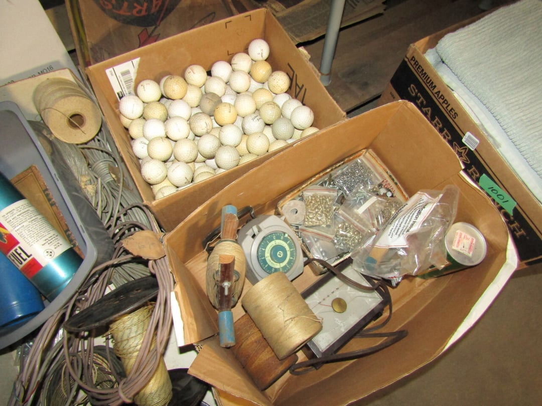 •Linens - Christmas Items - Luggage - Paper Cutter - Deer Hide - Costume Jewelery - Pictures & Mirror - Golf Ball Display Case - sports bag w/ baseballs