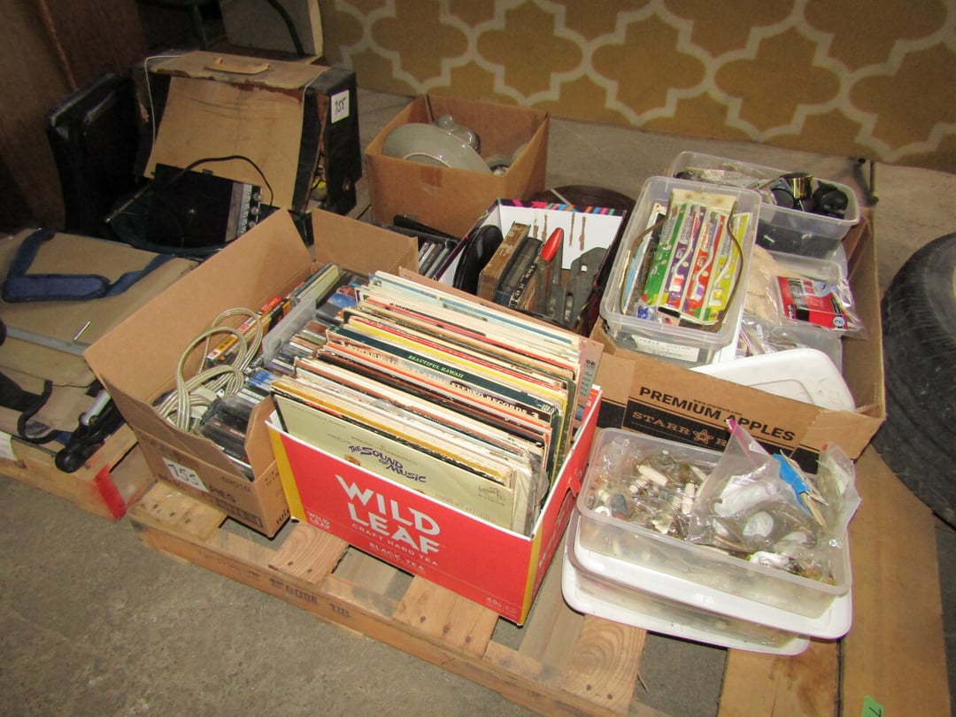 •gloves - tall wooden cupboard - walter payton statue - eighteen 78s - twenty-three 33s - 41 vintage records - ETC.