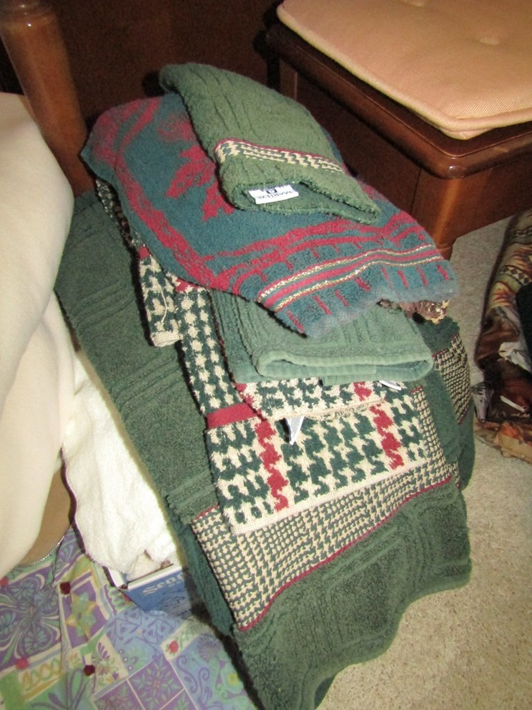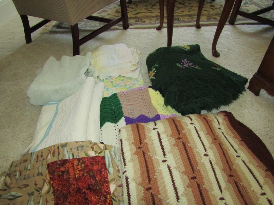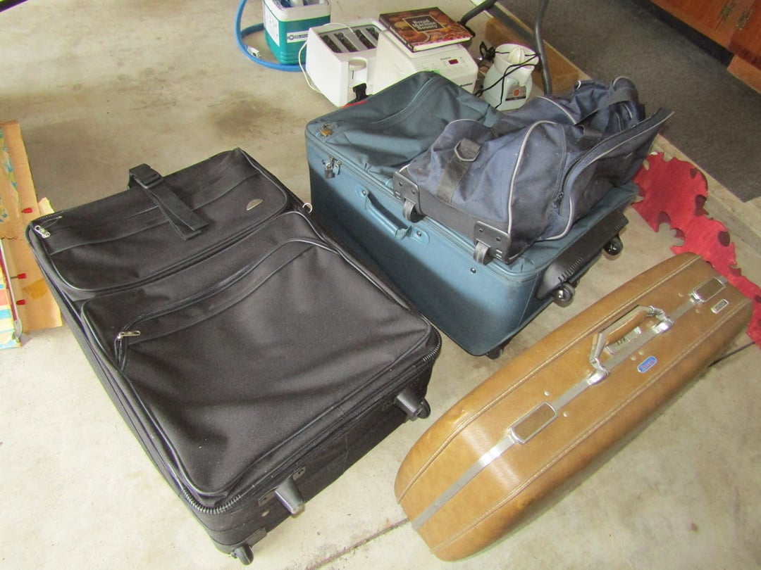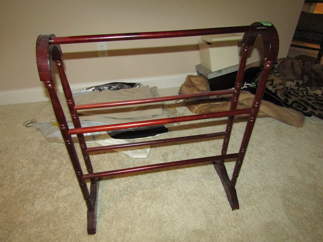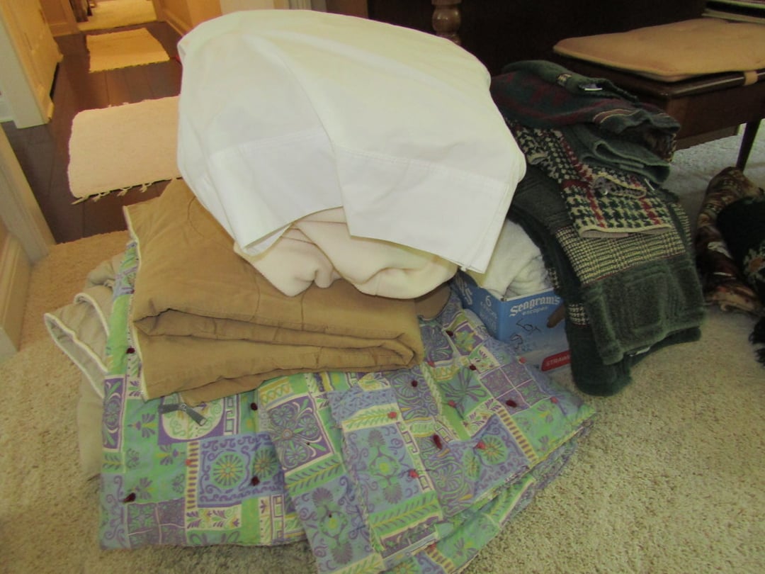 •Weather Gauge – 4 Luggage Bags – Sheets & Towels – Blankets & Quilts – Towels & Blankets – Ottoman – End Table – Chair – Bar Stools – Table w/ 2 Benches – Coffee Table – Desk & Chair – Couch – Love Seat – Shelf – Childs Rocker – Small Table – Drexel Entertainment Center – Roll Top Desk – Cedar Chest – Small Dresser – Armoir Dresser – Night Stand & Lamp – 5×8 Wool Rug – TV Trays – Card Table – Quilt Rack – Pictures – G. Harvey “ The Blessing” – G. Harvey “Charity – The Gift of Love” – Toshiba 42” TV – Baskets
