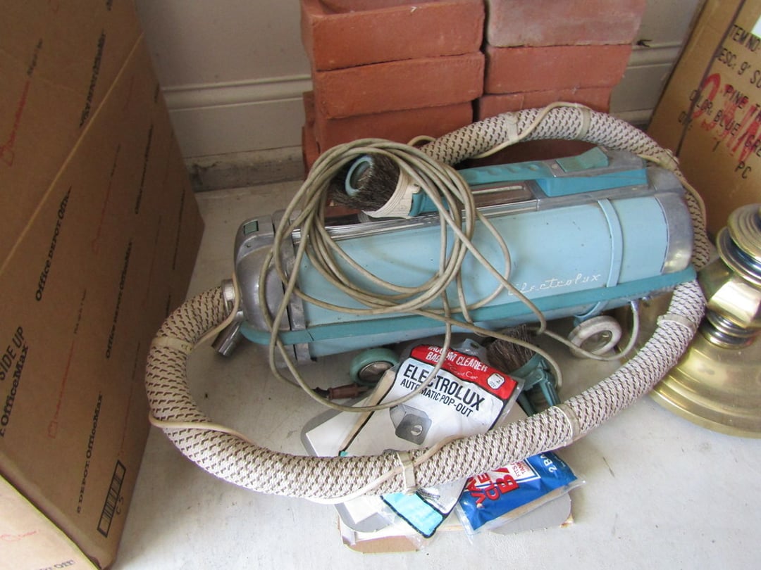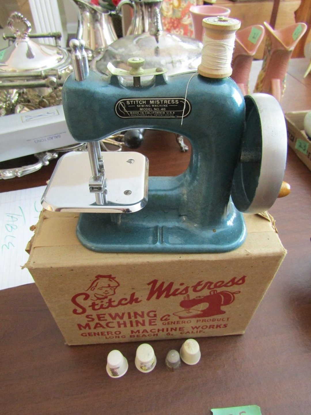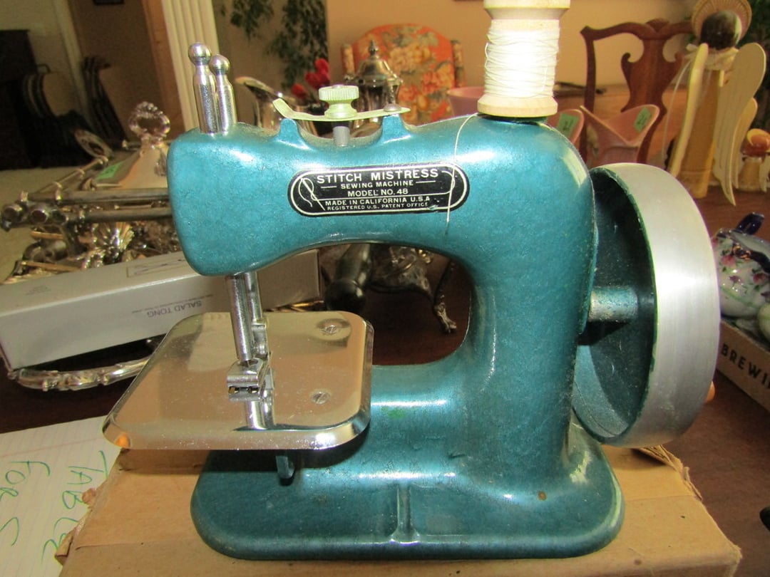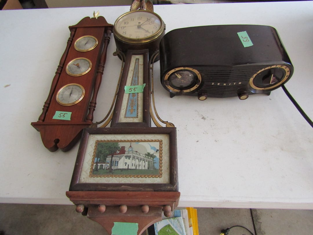 •Hull Pottery – Vase – Wood Display Tables – Stitch Mistress – Wite Sewing Machine – 6” GE Fan – Amana Refrigerator – Zenith Radio