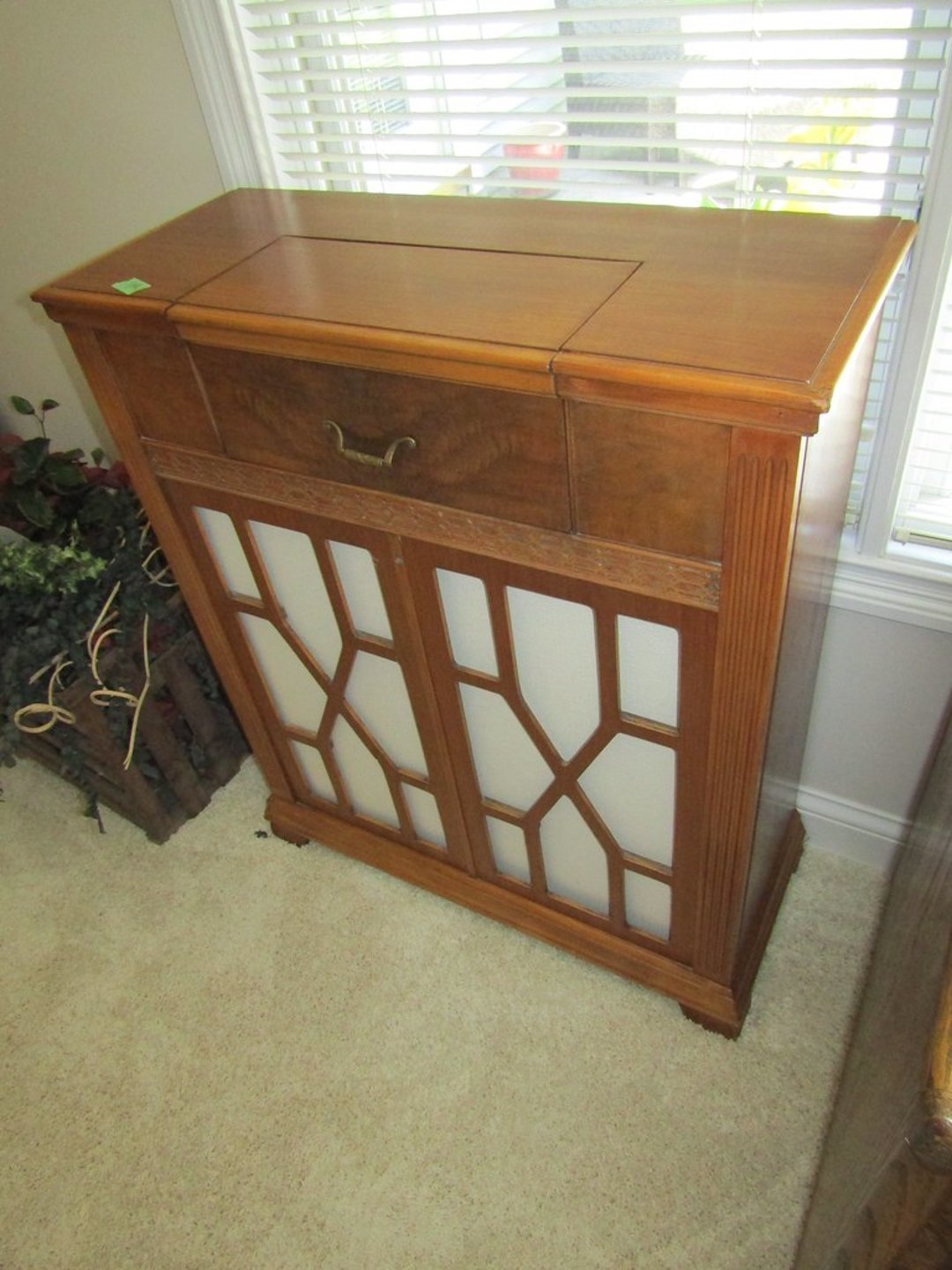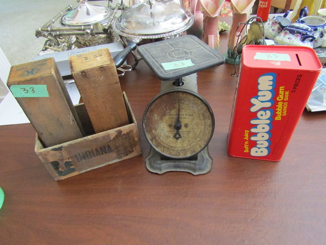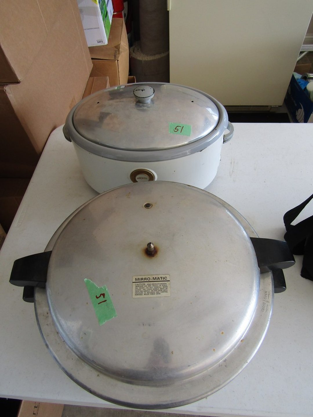 •Hull Pottery – Vase – Wood Display Tables – Stitch Mistress – Wite Sewing Machine – 6” GE Fan – Amana Refrigerator – Zenith Radio