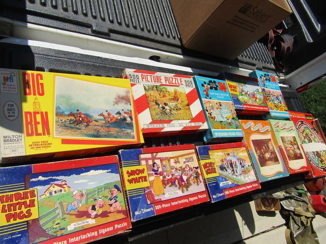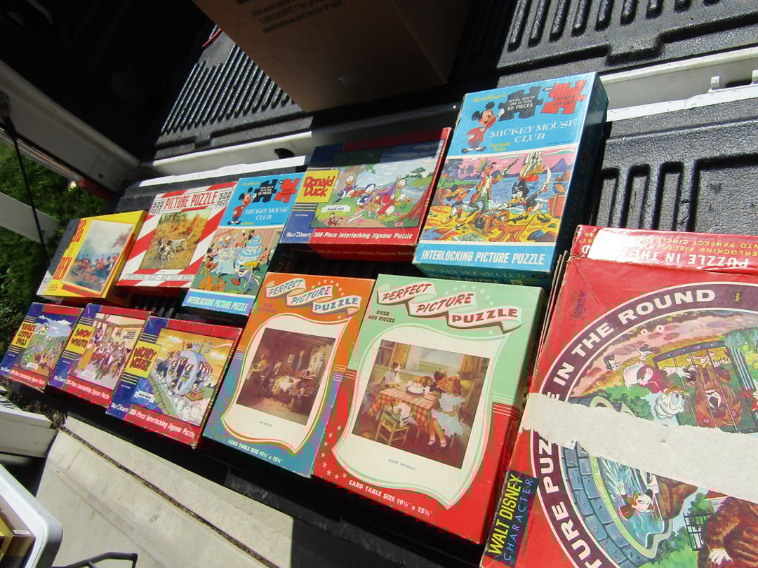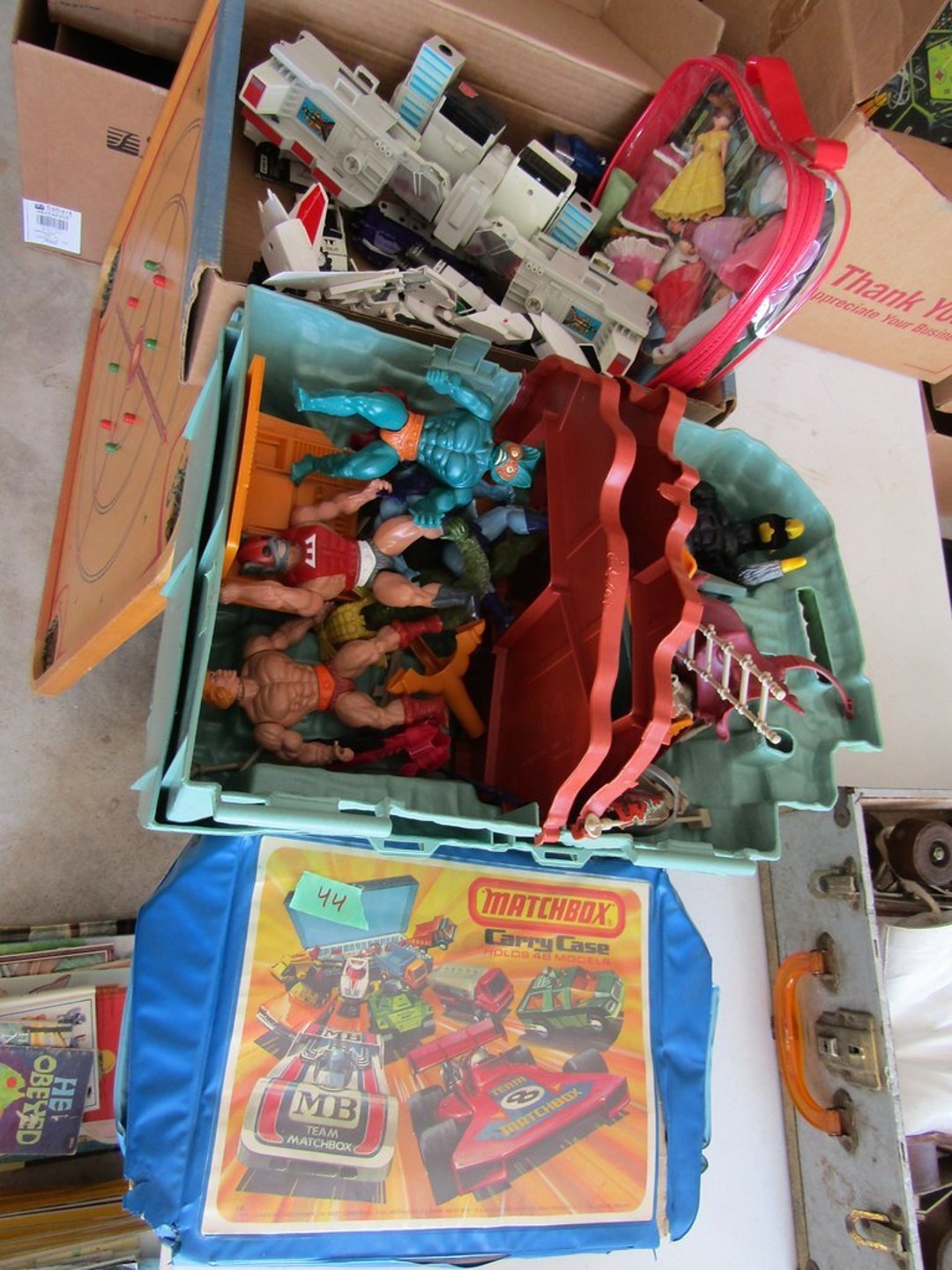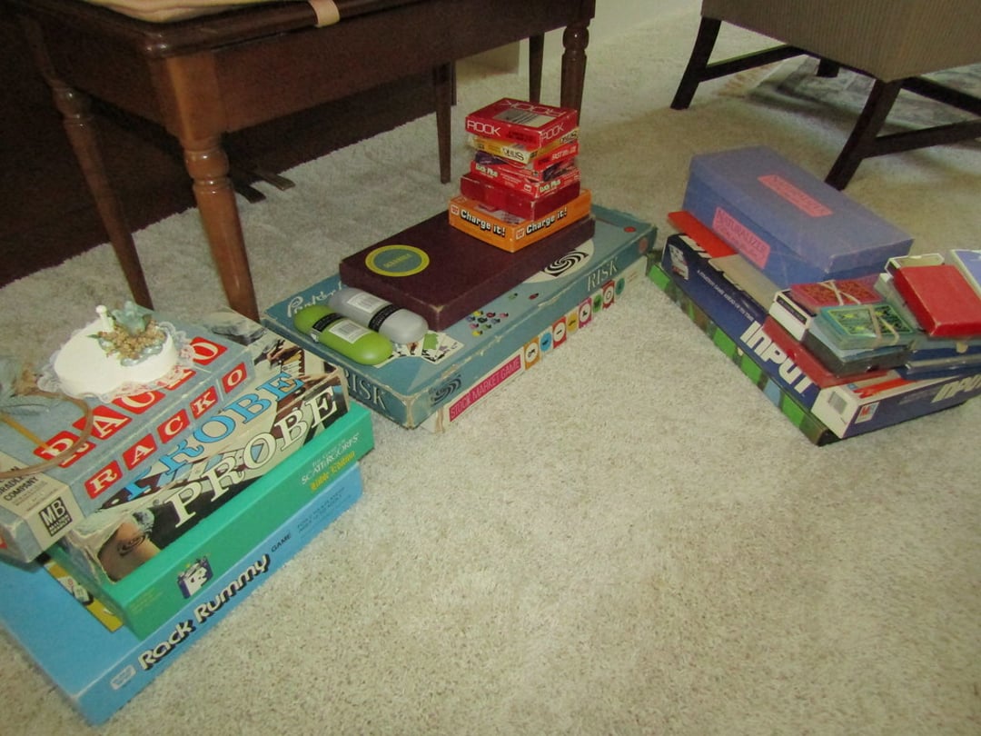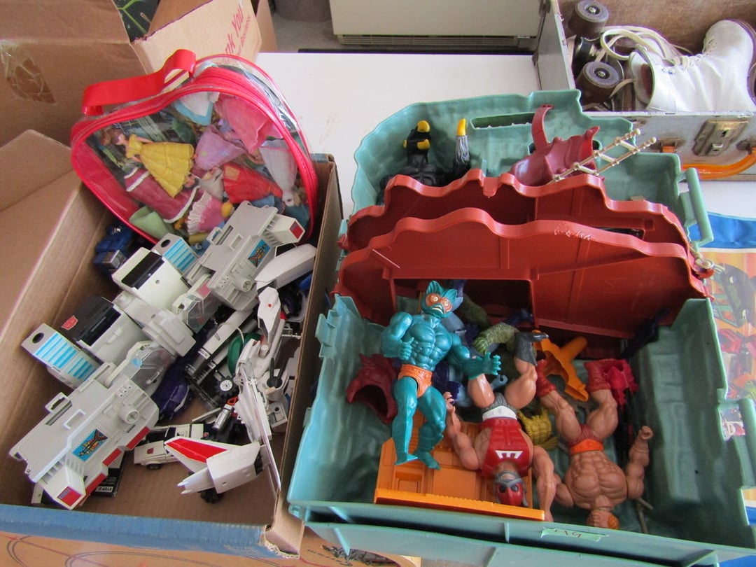 Odyssey Gaming System – View Master w/ Slides & Box – Lite Brite – Light Up Drawing Desk – Roy Rodgers Comic Books (No. 1,2,3) – DVD’s & James Bond Books – (6) Lewis Allis Messenger Books – Fischer Price Toys – Lincoln Logs – International Tractor 1586 – Micronauts Giant Acroyear – ERTL Red Wagon & Plow – Misc. Toys & Marble Block Set – Matchbox Cars, Action Figures, Misc. Toys – Table Top Hockey – Carrom Board – Children’s Books – Books – Misc. Puzzles, Poker Sets & Crayons – Holton Collegiate Trumpet & Chicago Roller Skates – Globe – Doll House & Accessories – Playhouse Dolls – Child Bowling Sets – Board Games & Teddy Bears – BubbleYum Bank – Records – CD’s, 45s & Cassette Tapes – Lefton Figurines – Hair Wands, Irons, & Misc. – 6 Wilson Tennis Rackets –
