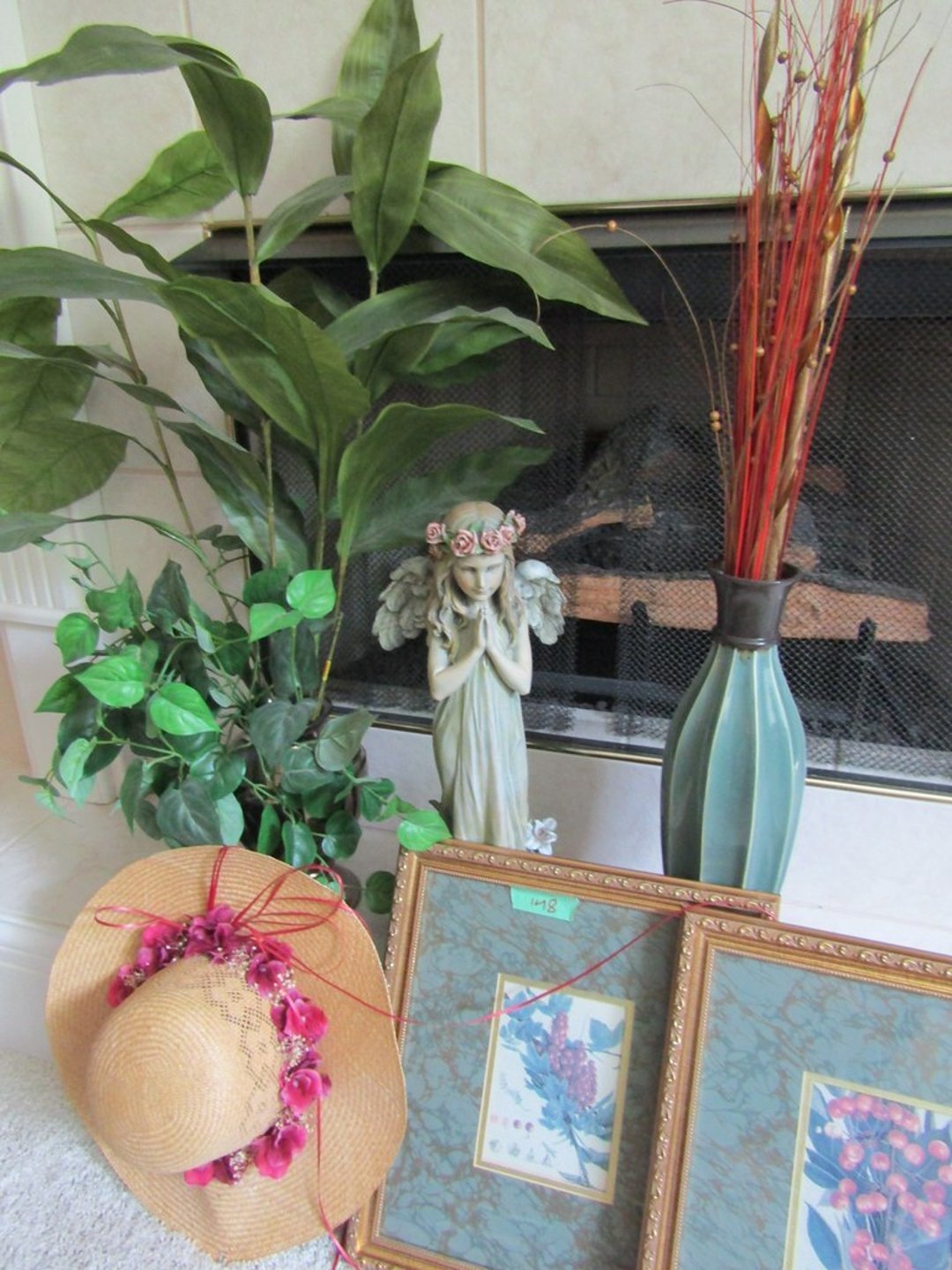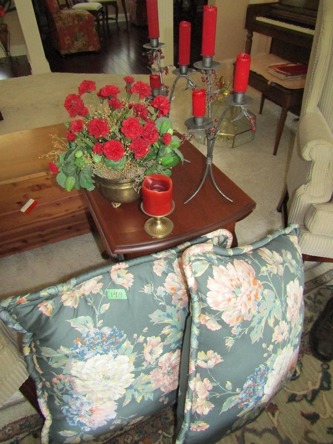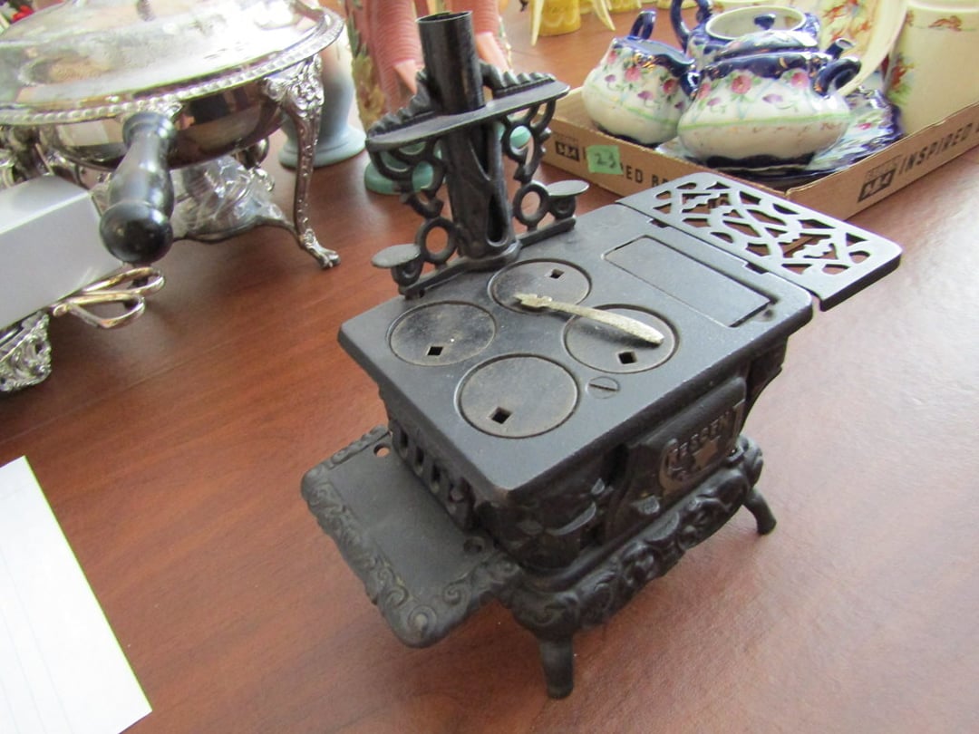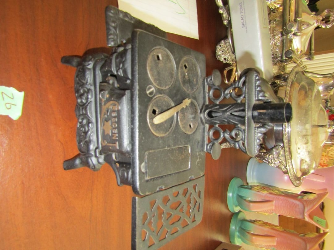 •Grinder – Silver China Set – Cresent Mini Cast Iron Cook Stove – Crock – Cast Iron Pit w/ Lid – Cook Books – Place Mats & Napkins – 2 Lamps & Electrolux Sweeper – Candle Wick – Candles & Pillows – Roseville