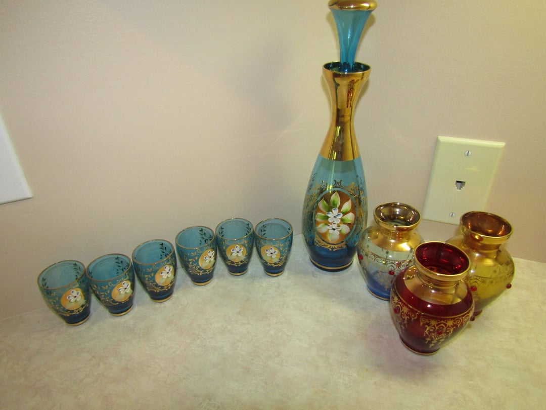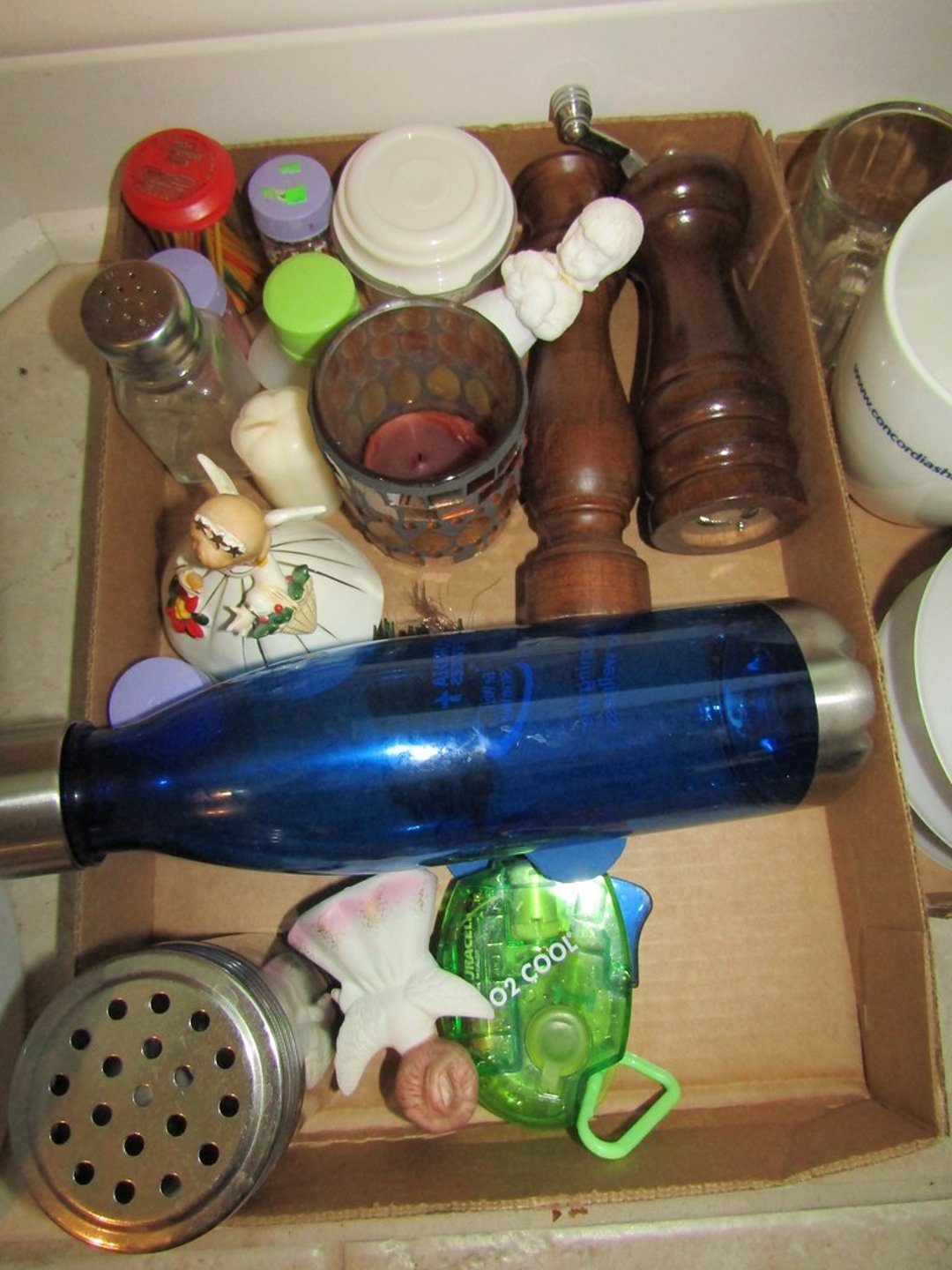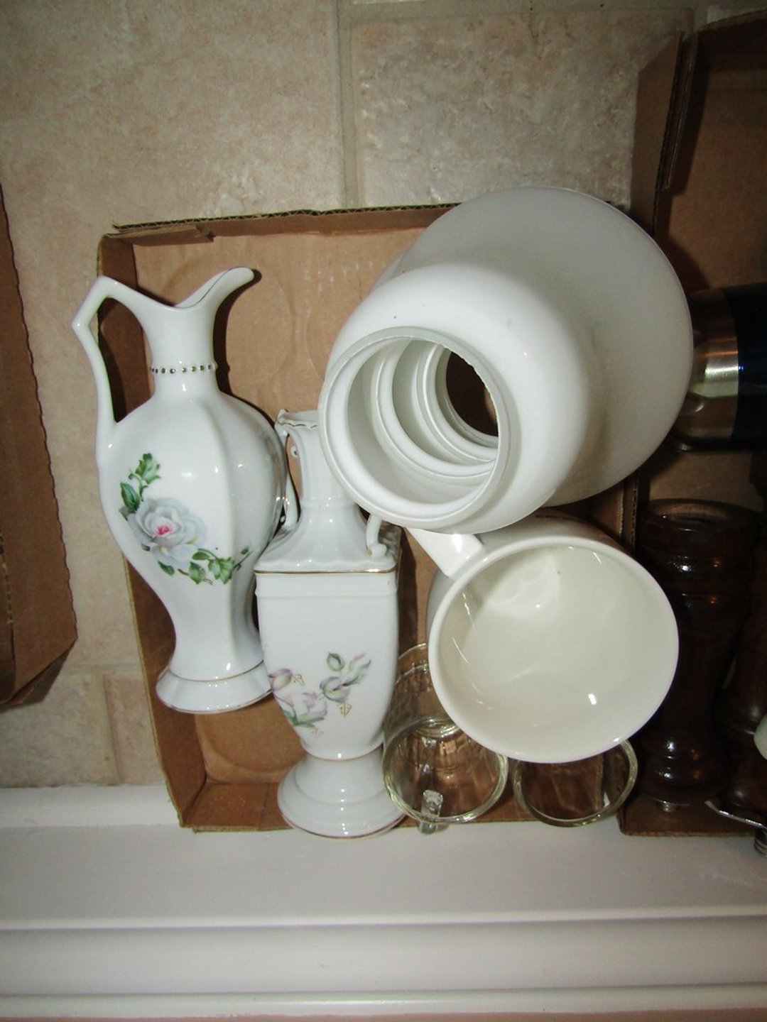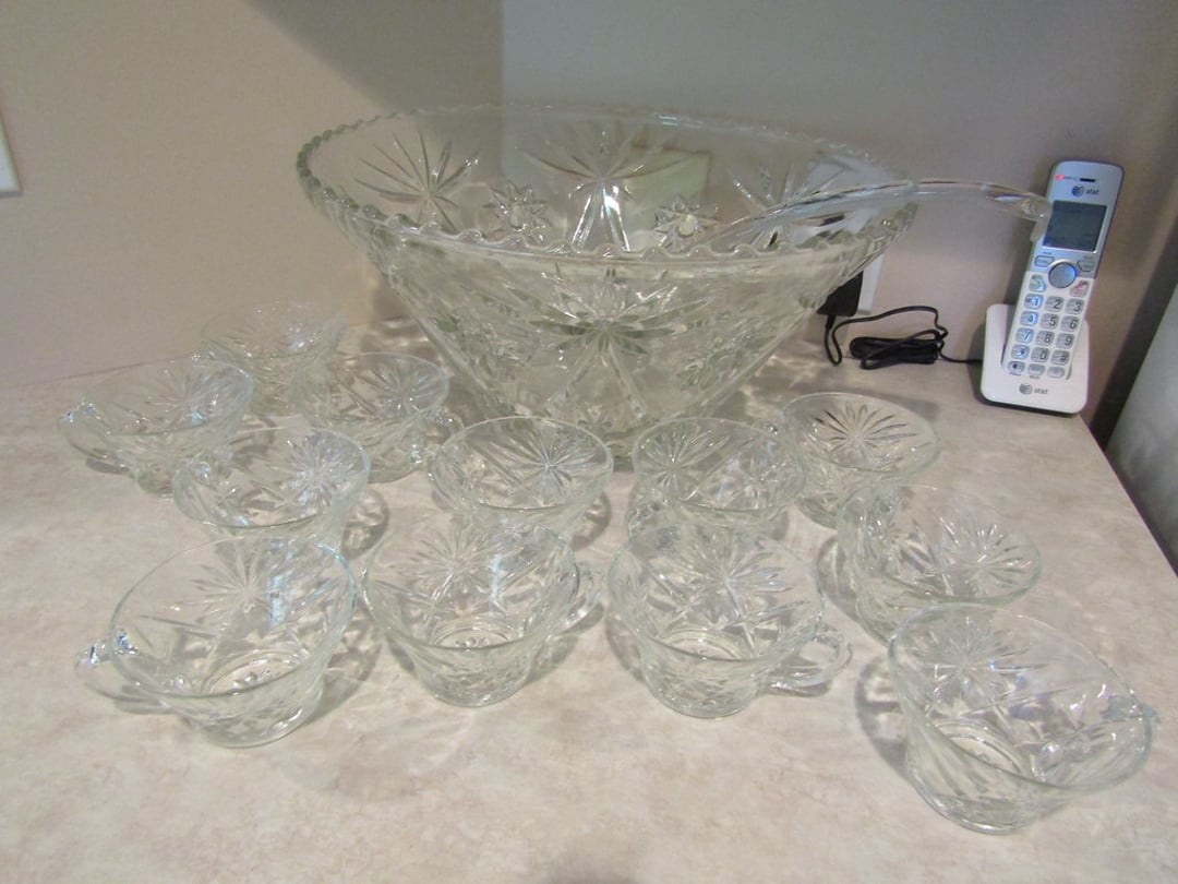 •Milk Glass – Punch Bowl w/ 12 Cups – (12) Wine Glasses – (6) Martini Glasses – Drink Glasses – Assorted Glassware – Misc. Glassware – Misc. China – Pyrex Dish – Flatware – Toaster