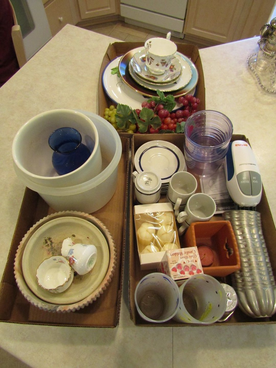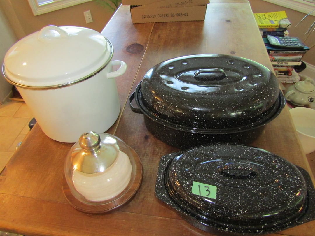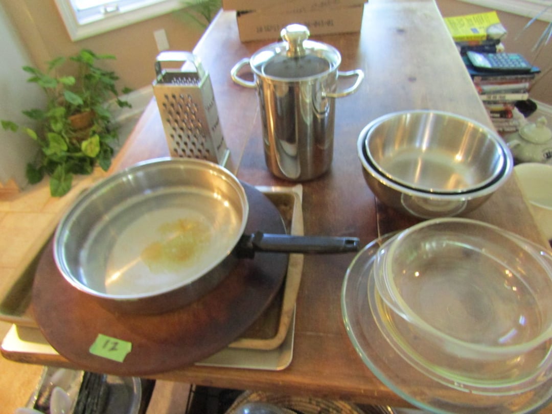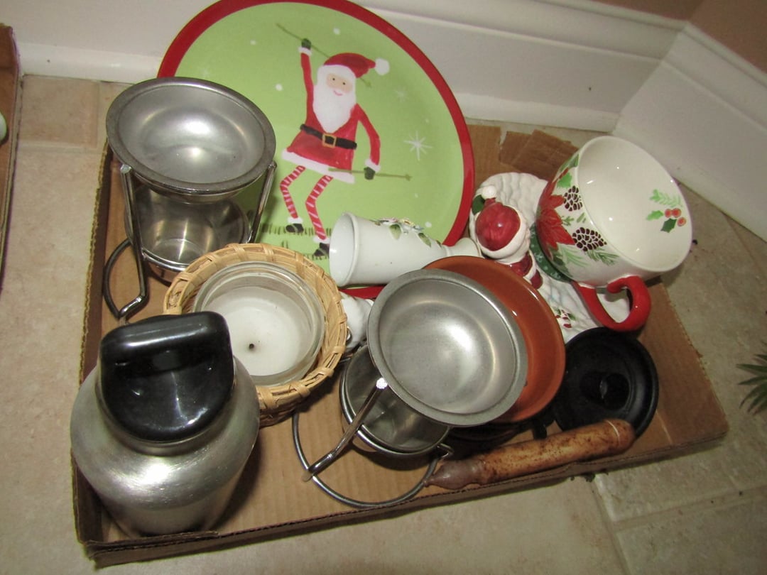 •Juicer – Misc. Kitchen Items – Misc. Ceramic Pieces – Chateau Dinner Set – Cooking & Baking Items – Scale – Cheese Boxes – Pots – Nesco Crockpot & Pressure Cooker – French Fry Cutter