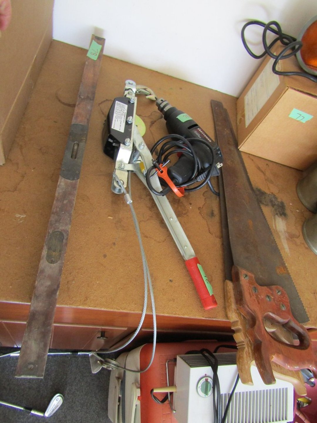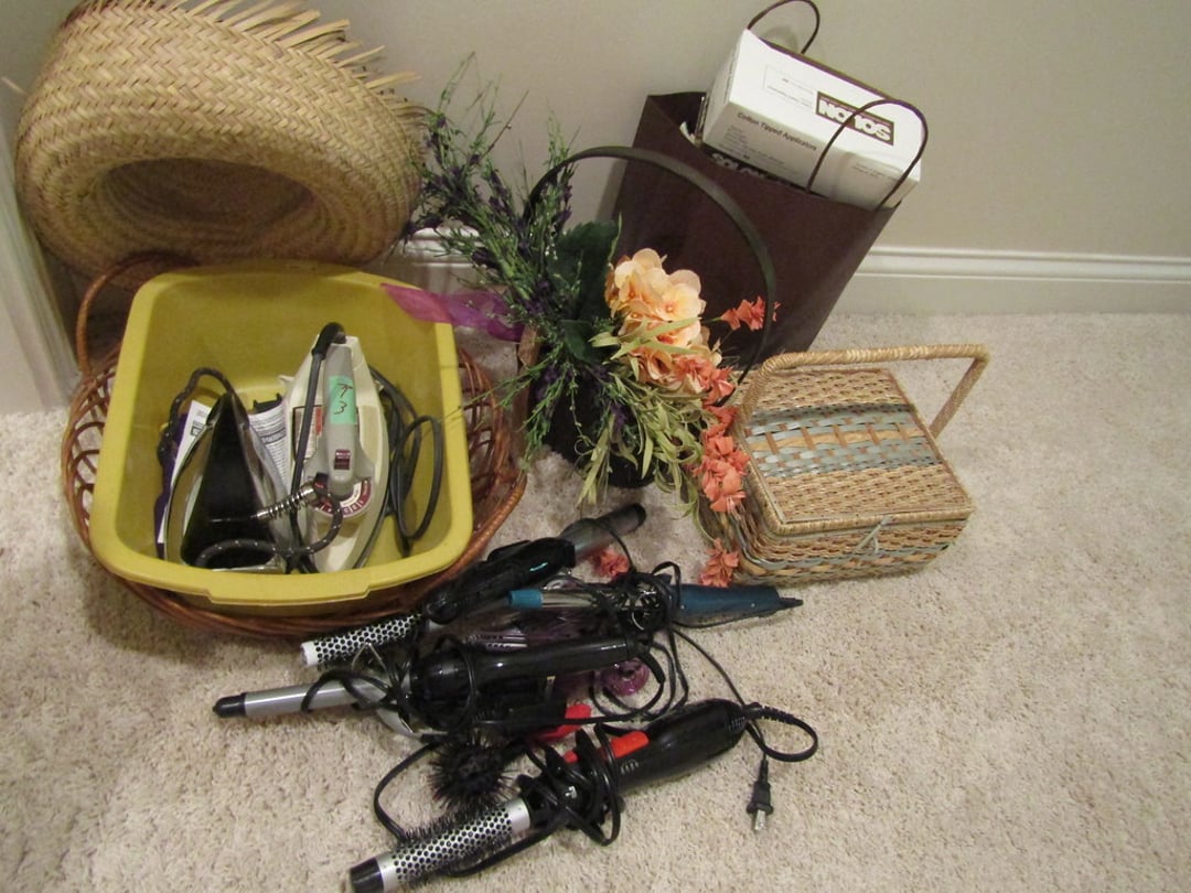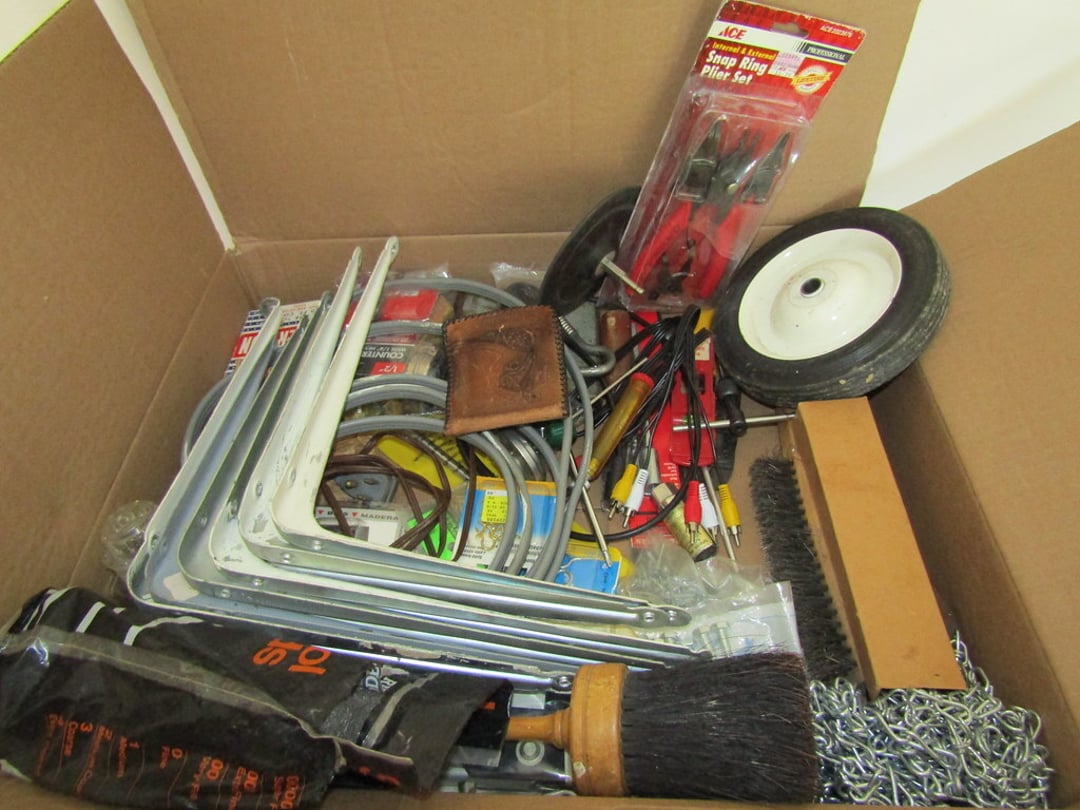 •Towels – Full Size Bed w/ Mattress & Bedding – Artificial Plants – Chandelier – Baskets – Umbrellas – Boat Lamps – Kennedy Tool Box & Misc. Tools – Tools – Misc. Tools – Hammers