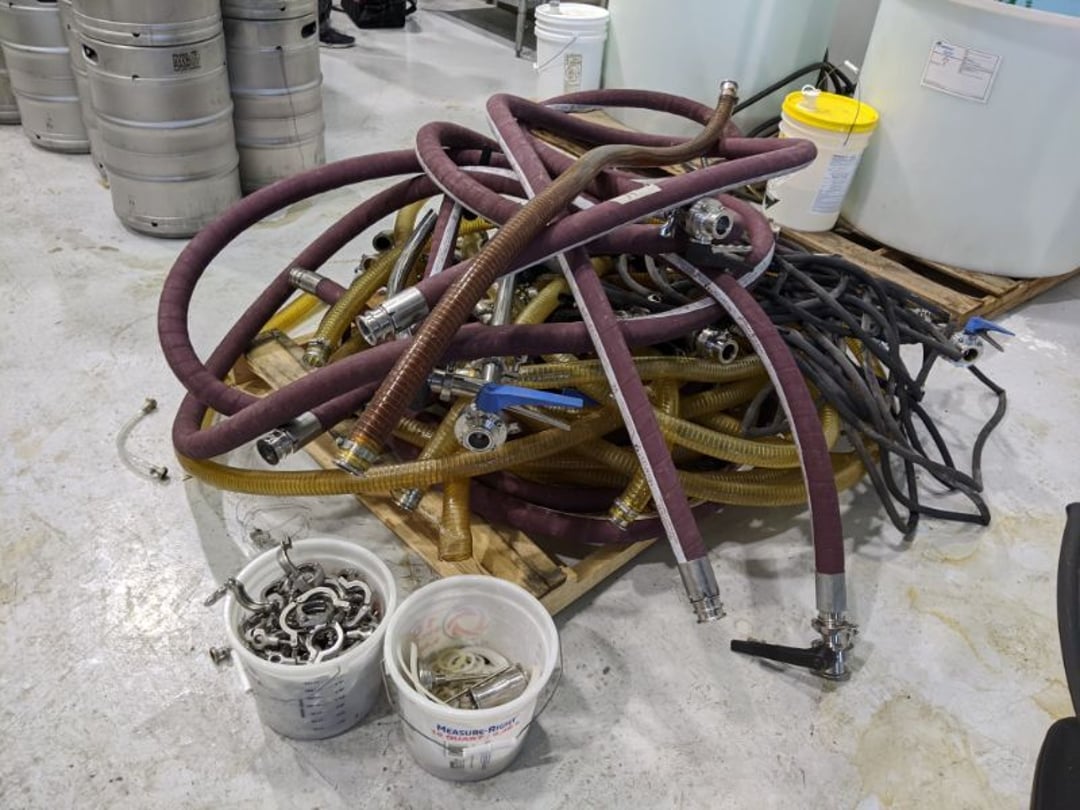 16' x 25" x 42" Tall Bar - 28' Bar w/ Foot Rail, Concrete Top - Bar Height Chairs - Several Table & Chair Sets - Rubbermaid Brute 32 Gallon Trash Cans w/ Lids - 4 Tap Jockey Box - True 2 Door Retail Display Cooler - Square POS Sytem w/ IPad - Square POS Base, Charger, & Accessories - Micro Matic EBC300 Draft Beer Line Cleaning Recirculating Pump - Wenzhou Delimachinery Equipment 20 Barrel Single Wall Brite Tank - Various Connectors, Hoses, Infrared Thermometer, & More - Control Panel For Brewhaus, 3 Phase, 480 Volt - Several 20 Barrel Jacketed Fermenters - Advantage BCD-5A Chiller - 4 Ranco Electronic Temperature Controllers - Various Hoses & Connectors Including Novaflex - 75 +/- Bags of Malt - 1/6 Barrel Kegs - Oak Barrels - Stainless Steel 4 Bowl Under Counter Bar Sink - Stainless Steel 3 Bay Sink - Whirlpool Dishwasher - 2 Shelving Units w/ Cleaning Supplies & Drying Racks - AO Smith Electric Water Heater - Sinks - Shop Vac, Brooms, Dust Mop, Squeegees - Various Trash Cans & Buckets - Table, Various Paper Product, Trash Bags - Digital Scales - True TPP-67 Prep Cooler - 2 Shelves, Hardware, Cleaning Supply, Maintenance Items - Hanging Rack, Extension Cords, Cleaning Supply - Flight Paddles & 120 5.5 OZ Glasses -13 OZ Beer Glasses, Have Logo On Them - Containers, Bottles, Coffee Cups, Stainless Steel Condiment Cups - 2 Stainless Steel Tables & Peg Board - Reverse Osmosis System - Plastic Containers - Pallet Jacks - Glass Jugs, 2 Plastic Water Containers - Epson WorkForce WF-7710 Printer & Paper Shredder - Office Chair, Desk, Monitor, File Cabinet, Bookshelf, Office Supplly - 9.5' Long Pew - Carts/Dollies - 10'X10' E-Z UP Canopy - Heater, Burner, Insulated Carrier - Merchandisers - File Cabinets - Large Assortment of Board Games - & MUCH MORE!