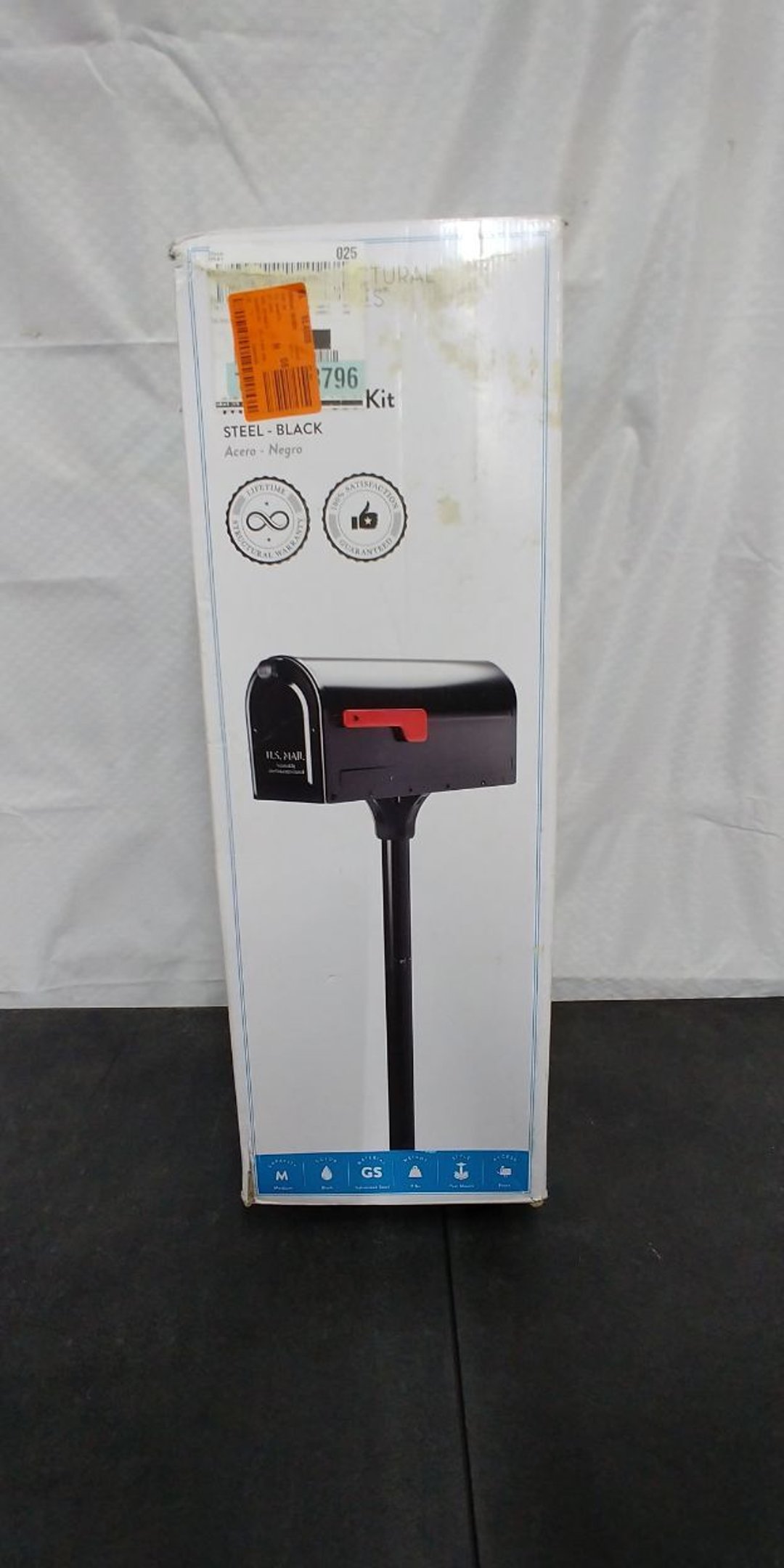 •Open Box Mailbox + Post Kit Steel Black