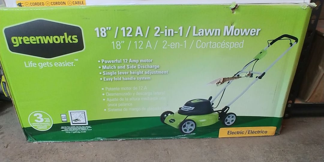 •Greenworks 18" 12A mp 2 in 1 Lawn Mower