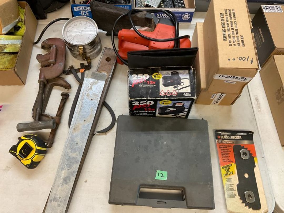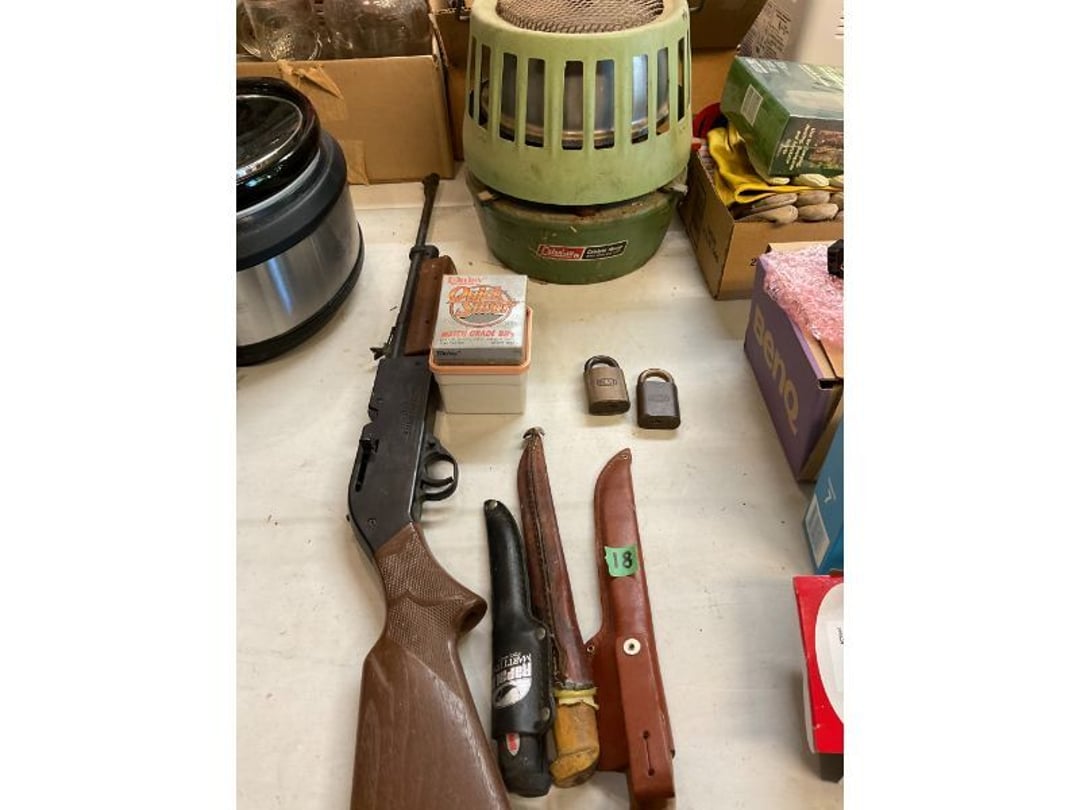 Wrenches, Screw Drivers, Pliers, Tools, Sanding Discs, Drill Bits, Open End Wrenches, Cresent Wrenches, Pipe Wrenches, Hammer, Wrenches, Craftsman Quick Wrench Set, 5/16-3/4", Tennis Balls, Baseballs, Baseball Glove, ABC Fire Extinguisher, Yellow Extension Cord, Filters, Lights, Extension Cords, Flood Lights X6, Bolt Cutters, Tool Lot, Ratchet Straps, Recovery Straps, Box of Gloves, Moving Blankets, Extension Cords, First Aid Kit, Ammunition Supplies, Filters, Electrical Supplies, BB Gun, Fillet Knives, Padlocks, AMF Tricylce, Blue Big Wheel, Rug Doctor, Honeywell Heater, Coolers, CD Player, Vizio Speaker, 3 Pot Warmer, Strainers, Colombian Wood Vise, Light Bulbs, Mason Jars, Rubber Seals, Household Supplies, Bucket of Nails, Screws, Hitachi Dough Bakery, Air Fryer , Glassware , Paint Clothes, Supplies, Chargers, Remotes, Weller Pyropen, Socket Set, Organizer , Hard Hat, Compression Tester, Bunge Cords, Hammers, House Cleaner, Outdoor Cleaner, Rust Remover, Conduit Bender, 2 Ton Jack, 58" Grill Cover, Black & Decker Battery Hedge Trimmer, Sony Closed Loop Dual Capstan, Kero-Sun Heater, 3 Bags Charcoal , BBQ Pellets, Grill Supplies, Flashlights, Spin Scrubber, Staple Gun, Staples, Measuring Tape, Plant Food, Little Giant M17 Step Ladder, Craftsman Tool Box, Electrical Switches, Supplies, Wire, Electrical Supplies, Terminal Kit, Plenum Wire, Electrical Supplies, Fastners, Duct Work, Freeze Detector, LED Recessed Lights, Plumbing Supplies, Bolt Organizers, Antifreeze Tester, Padding, Hats, 30" Range Hood, Speakers, 6" Bench Grinder, Household Supplies , Water Pressurized Fire Extinguishers , Rockwell Drill Press, File Cabinet, Chair, Miscellaneous Wood Pieces, Router Table, Stanley 1.5 Gallon Vac, Bicycles, Planters, Top Shelf, Exercise Equipment , Homelite 3100 PSI 2.7 GPM Pressure Washer, 0.5 HP Sump Pump , Espresso Machine, Air Cleaner, Glassware , Kitchenware , Housewares, Gorilla Tape, Window Shade, Air/Water Hose, Floor Mat, Waterer, 2" 212cc Water Pump, 220v Extension Cord, File Cabinet, 4 Wheel Cart, Landscape Items, Cooler, Misc. Itmes, Air Fryer, Warmers, Top 3 Shelves, Corning Ware, Jar Opener, Fryer, Frigidaire Refrigerator-Freezer, 18.4 Cu Ft, Paints, Cleaners, Garage Supplies, Metal Organizer with Contents, Rope, Binders, Snow Thrower, Heating Elements, Speakers, 14'x14' Hexagon Gazebo, 2" Recievers, Multi Use Outdoor Table, 4' Step Ladder, Jumper Cables, Garden Supplies, NEW 5 Gallon Roof Coating , Windshield Wipers, Saws, Extension Cord, Belts, Aluminum Folding Chairs, Garden Supplies, Cleaning Supplies, Nails, Screws, Garage, Supplies, Antifreeze, Tile, Grout, Browning Propane Grill Smoker, Wood Chairs, Newspaper Rack, Benches, Ice Fishing Supplies, Red Wagon, 2 Wheel Dolly, Step Stool, Extension Cords, Come Along, Air Line, 43cc Auger Engine, Hand Tools, Gloves, Tarps, Work Bench, Outdoor Cooking Equipment, 2HP Air Compressor, Wire, Squirrel Cage Fan, Pea Gravel, Boys Bike, Extension Cords, Buckets, Fence Post Pounder, Leaf Blowers, Hose, Bagger, Ladder Jacks, Tar Paper, Golf Bag Cart, 12' Aluminum Ladder, 20' Fiberglass Ladder, Remington Wingmaster 870 , 10' Fiberglass Ladder, 6' Step Ladder, Simplicity 48" Zero Turn Mower, 38" Agri Fab Lawn Sweeper, Echo Power Blower Rain Gutter Kit, Ryobi Trimmer, Tiller, Shire Stake Compression Tool, Wood Box , Propane Patio Fire Pit, Portable Torch Set, Backpack Sprayer, Brooms, Tool Box, Buda, Items On Top Shelf, Garden Hand Tools, Garden Hand Tools, Twin Cylinder Onan Gas Engine, Scotts Lawn Seeder, Gas Cans, Grease Guns, Oil, Garage Items, Items In Loft, Haulin Utility Trailer , Kioti CS2510 Utility Tractor, Brinly 17 Cu. Ft. Polly Yard Dump Cart, 48" Yard Roller, 42" Yard Thatcher, Agri-Fab Broadcast Spreader, 42" Firmco Trailer Yard Sprayer, 48" Nortrac 3 Point Catagory 1 Box Scraper, John Deere 316 Lawn Tractor, 2007 Lincoln Mark LT Pickup, DR Leaf And Lawn Vacuum, Oils Paints Top 2 Shelves, Oil And Gas Cans Bottom 2 Shelves, Reddy Heater 50,000 BTU, 8' Fiberglass Step Ladder, 24' Aluminum Extension Ladder, 3 Sets Plastic Saw Horses, Bedding Bottom Shelf, 6 Totes Glassware, 2 Boxes Baskets, 2 Boxes Picture Frames, Boxes Of Bedding Bottom Shelf, Animal Steps, Jack Stands, Jack, Aluminum Roof Racks, Chain, Shelf, Gas Cans, Caulk, Wire, Rope, Clamps, Ice Auger, Evenflo Baby Walk Thru Gates, Computer Bags, Houswares, Coca Cola Merchandise, Robot Sweeper, Wall Timers, Lights, 2 Boxes Houswares, Tote Of Handbags, Women's Shoes, Boots, Glass Cat Statues, Set Of Plates With Kittens On Them, Handbags, Utensils, Glassware, Bells, Char Griller Akron Smoker, Dorm Fridge, Green Smoker, Hand Tools, Rakes, Brooms, Shovels, 4 Drawer Filing Cabinet, Christmas Supplies , Items On Shelf, Pots, Pans, Kitchen Utensils, Cooking Unit, 2'x4' Metal Shelf, HDMI Cables, DVD Players, Speakers, Household Items Bottom Shelf, Frost Guard Protective Windshield Guard, 2'x7' Wood Table On Wheels, 8 Point Deer Head, Hose Reel, AC Unit, Metal Siding 45" Tall 12 Pieces, Household Items, Cen-Tech Automatic Battery Charger/Starter, Klutech MiG 140i MiG Welder With Cart, Hercules 10" Compact Job Site Table Saw, Pittsburgh 50" Clamp And Cut Edge Guide, Keter Folding Adjustable Portable Workbench, Keter Folding Adjustable Portable Workbench , Echo PB-580T Backpack Blower, Oregon Electric Chainsaw, Remington Electric Pole Saw , Progressive Electronics Model 500HP Cable Locator, Ceramic Heater, Phone System, 2 Gallon Interior Paint, Stereo Systems, 20lb Propane Tank, 30lb Propane Tank, 1/2 Full, 30lb Propane Tank, Full Tank, Electrical Supplies, Masking Tape, Battery Charger, Buffer, Hand Vacuum , Bosch 2" Rotary Hammer, 4 Totes Household Items , Hats, Scarfs, Wigs, Glassware , Record Player With Records, Mirror, 11 Pictures, Polly Wheelbarrow , Rolling Walker With Seat, Cane, Folding Walker, Simplicity Chipper/ Shredder, Porcelain Dolls, Lighted Village, Richard Simmons Doll, Porcelain Dolls, Books, Step Stool, Basket, Electronics, Brass, Cooper Plumbing Supplies, Flares