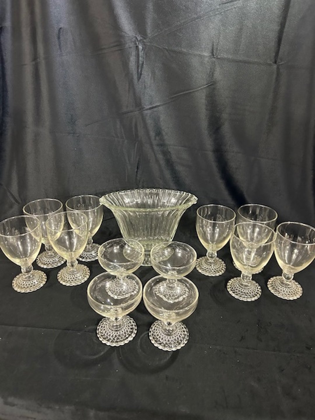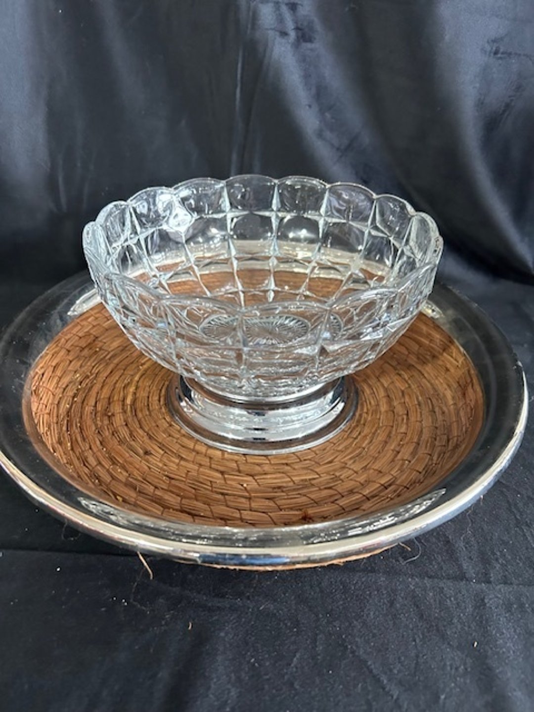 •Glass bowl and serving weaved plate
