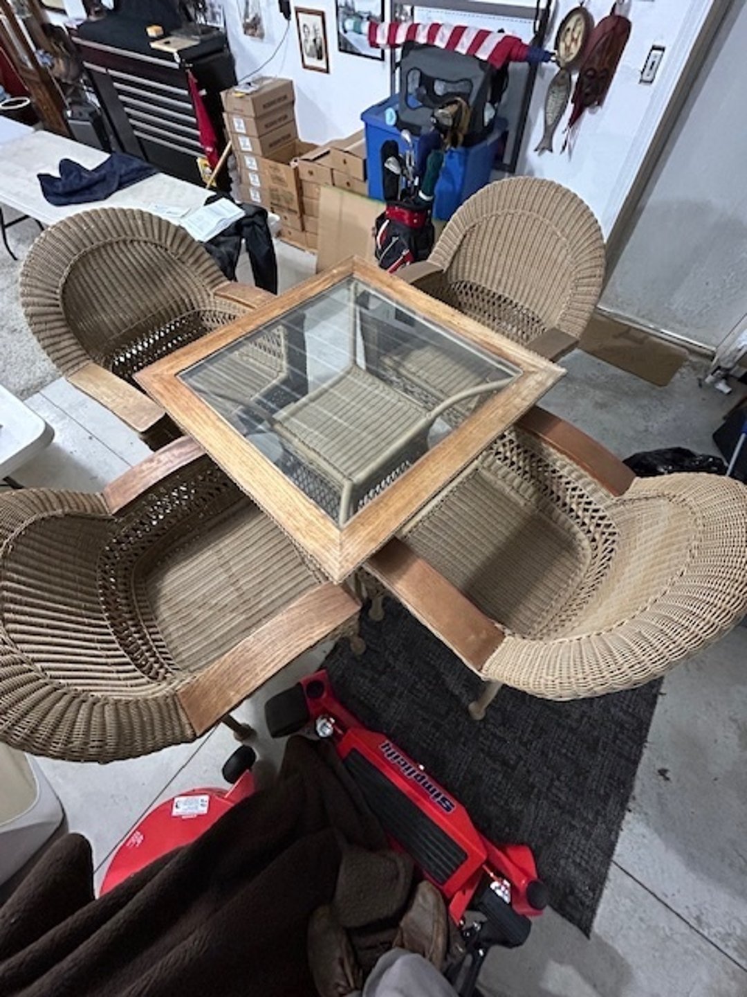 •High Top sq. glass top wicher table and 4 chairs