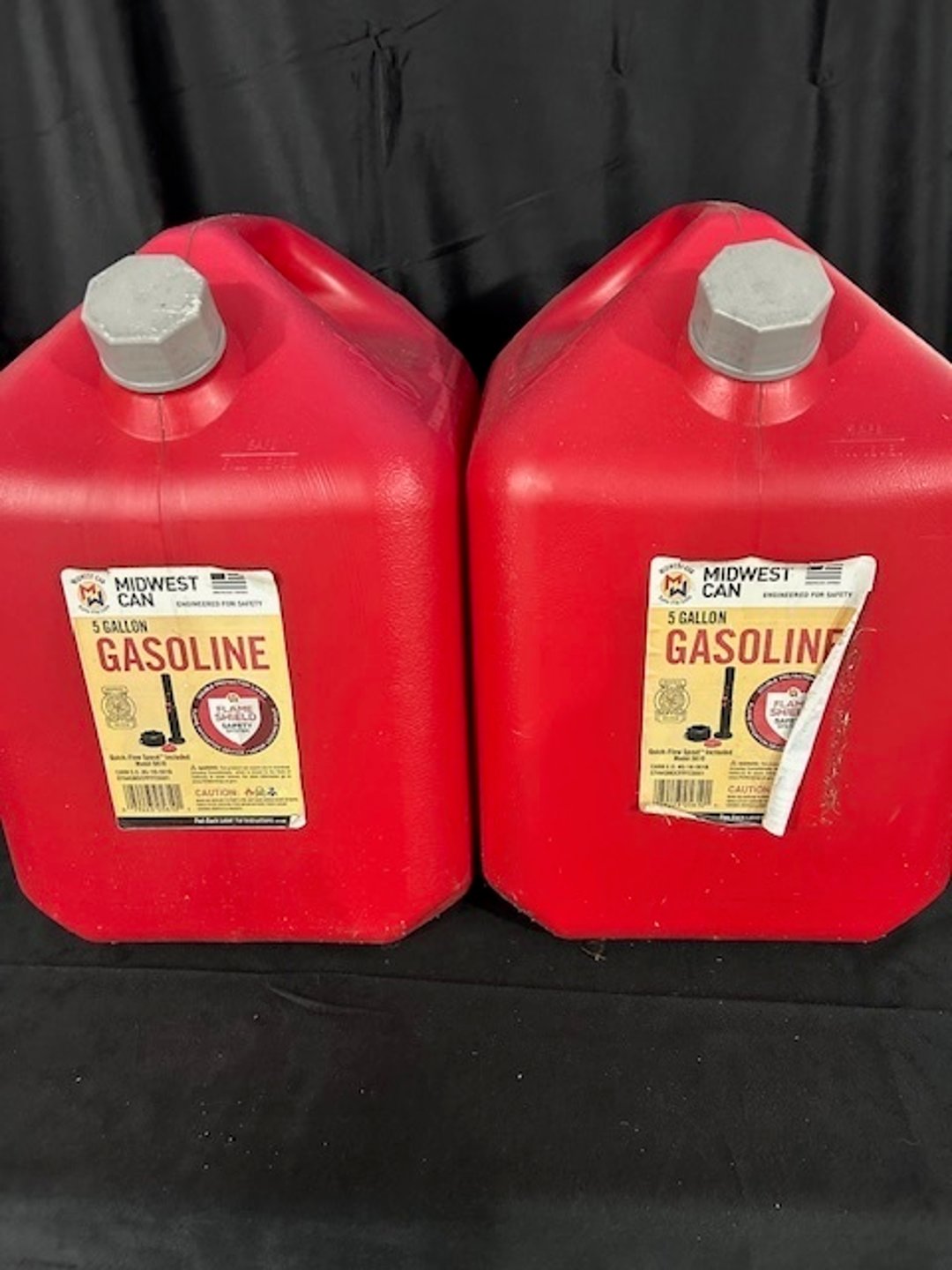 •2- plastic 5 gallon gas cans