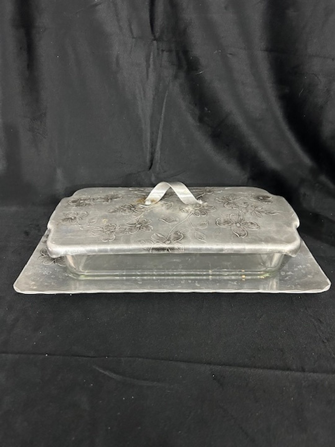 •6"X9" cornbread glass pan with cover and plate