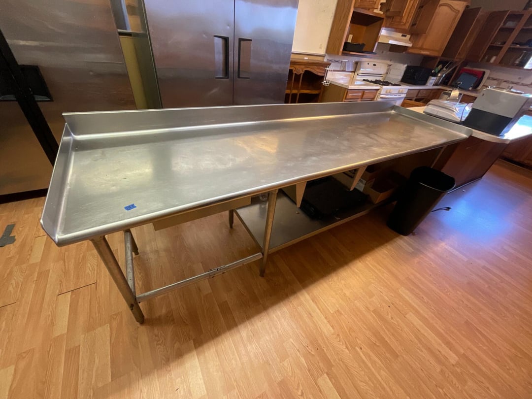 •8' Wide Stainless Table W/ Contents