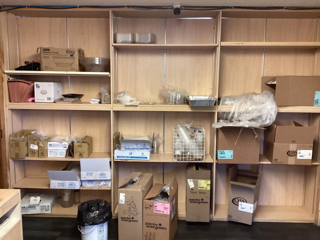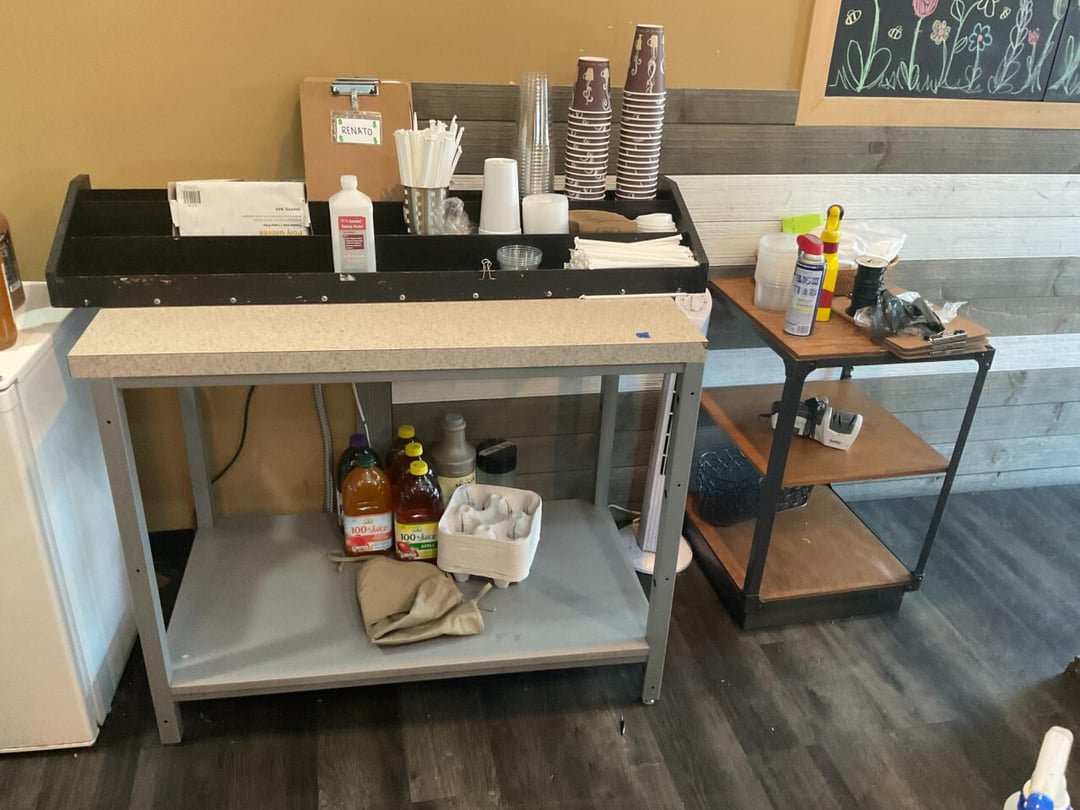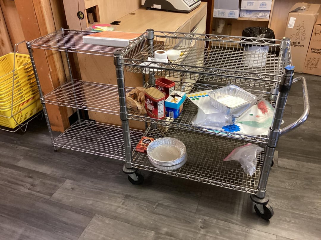 •Wire Shelving W/ Takeout Containers & Cups