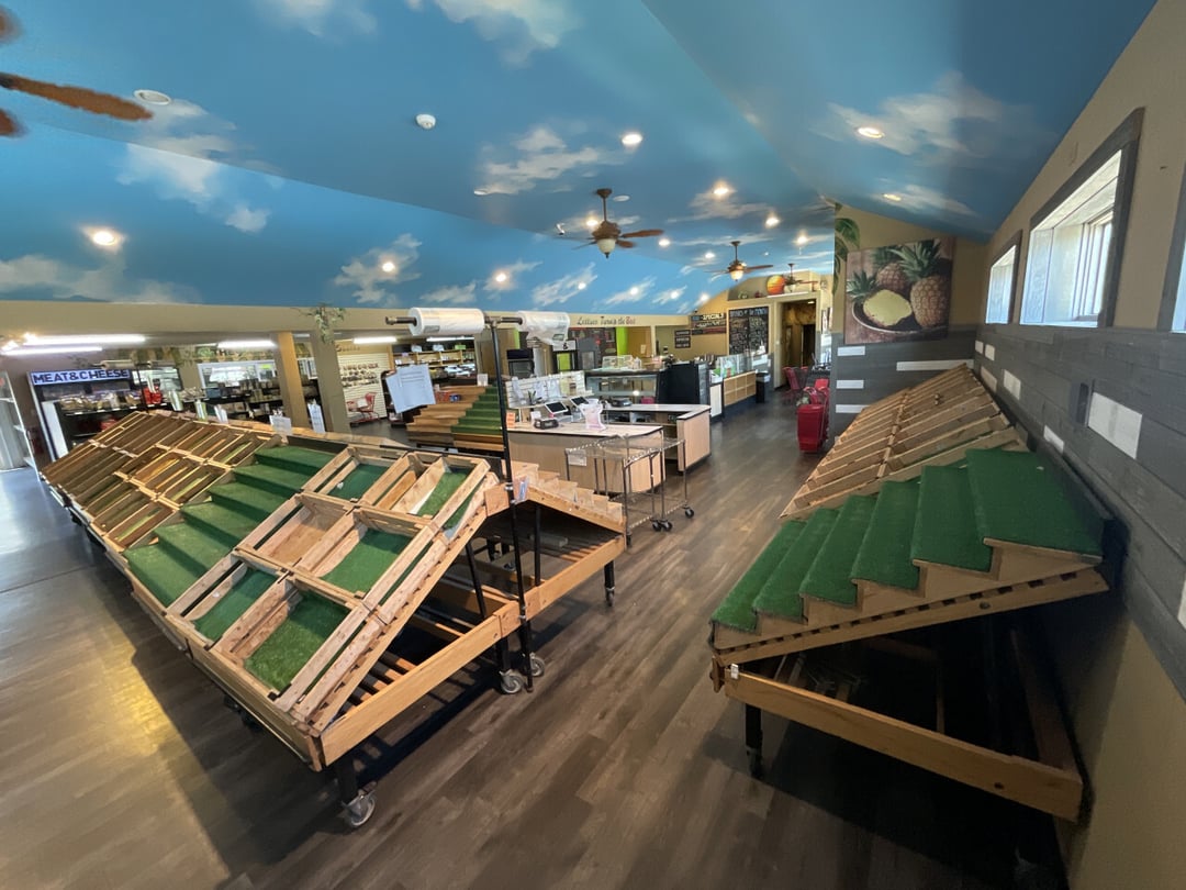 •(12) 4'W x 45"D Rolling Produce Stands