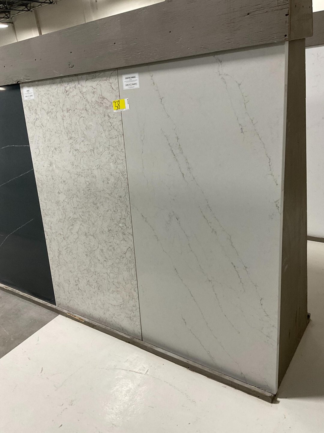 •(3)30"x56" Quartz Slabs with/ 1 Wood Display Racks