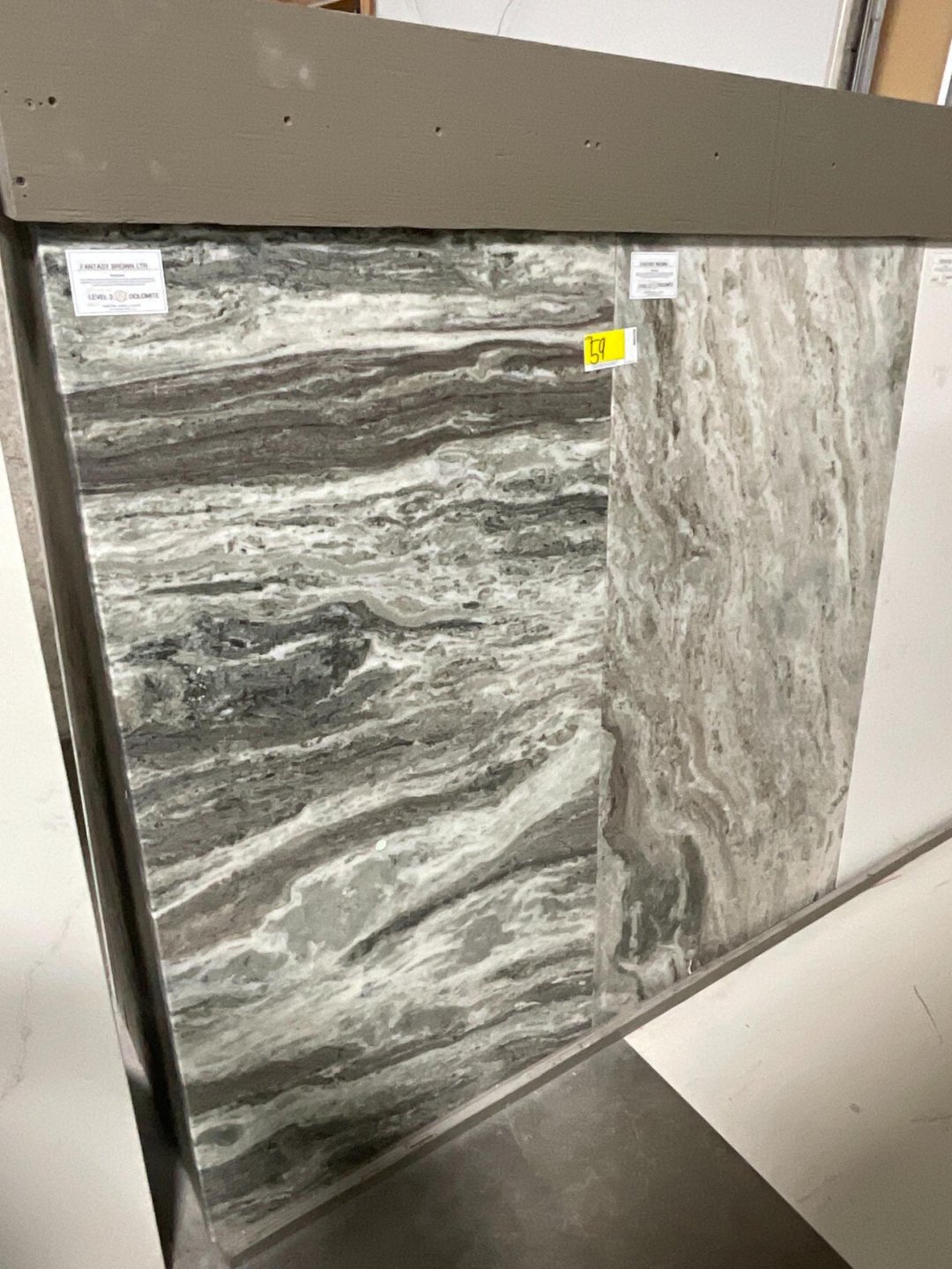 •(4) 30"x56" Dolomite & Quartz Slabs with/ 1 Wood Display Racks