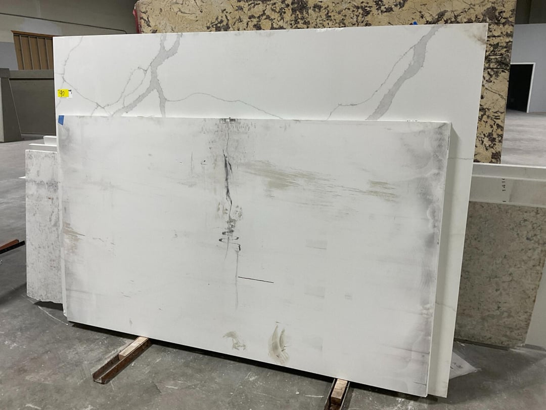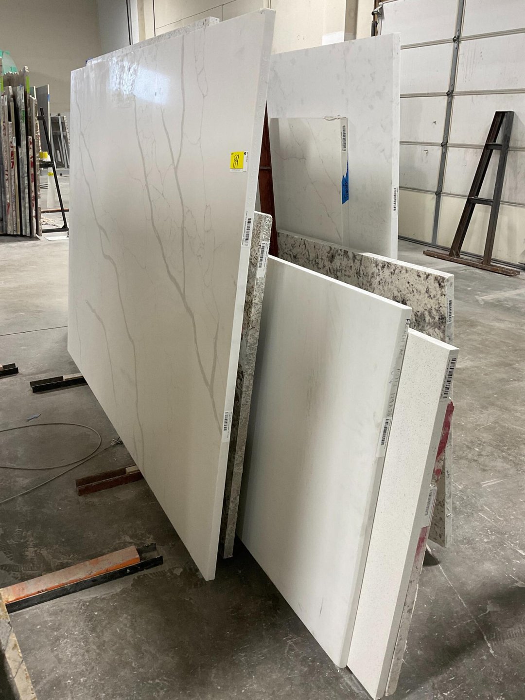 •(3)30"x56" Quartz Slabs with/ 2 Wood Display Racks