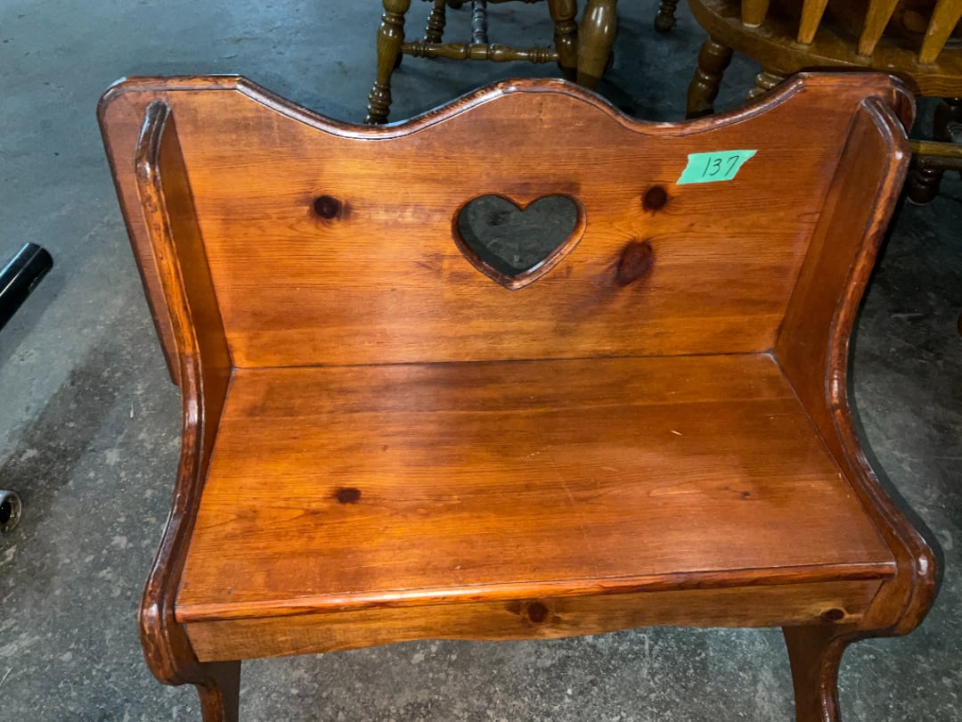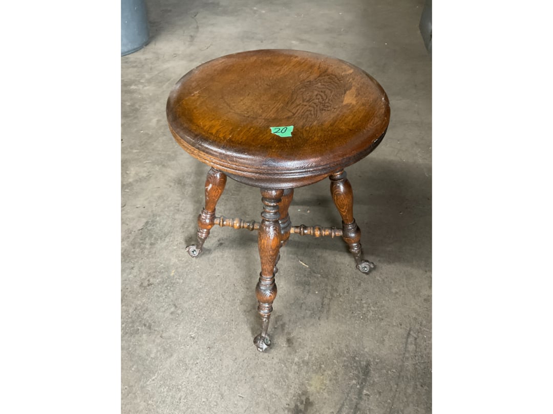 •Vintage Wood Piano Stool w/ Glass Claw Feet