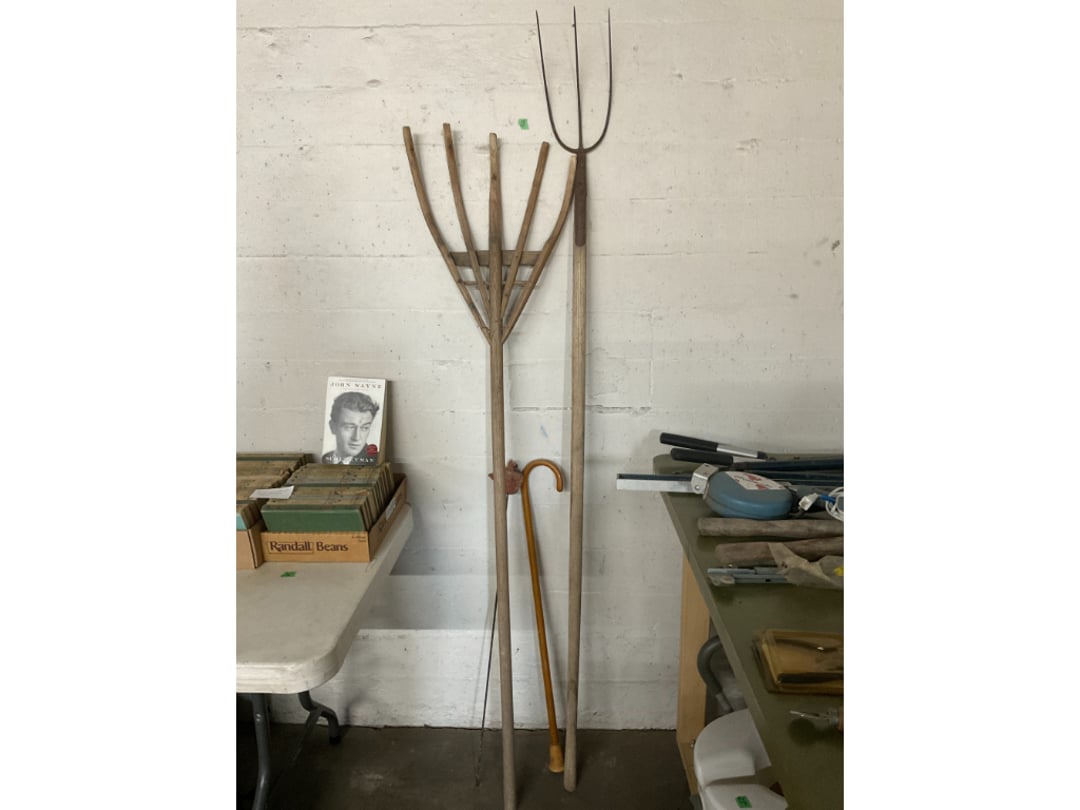 •Primitive Wood Rake & 3 Prong Pitchfork