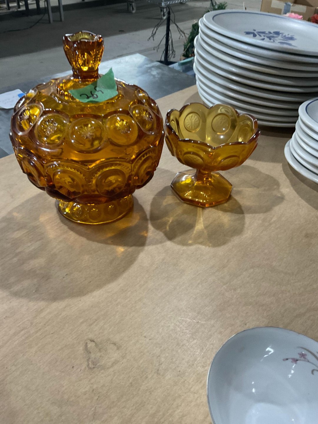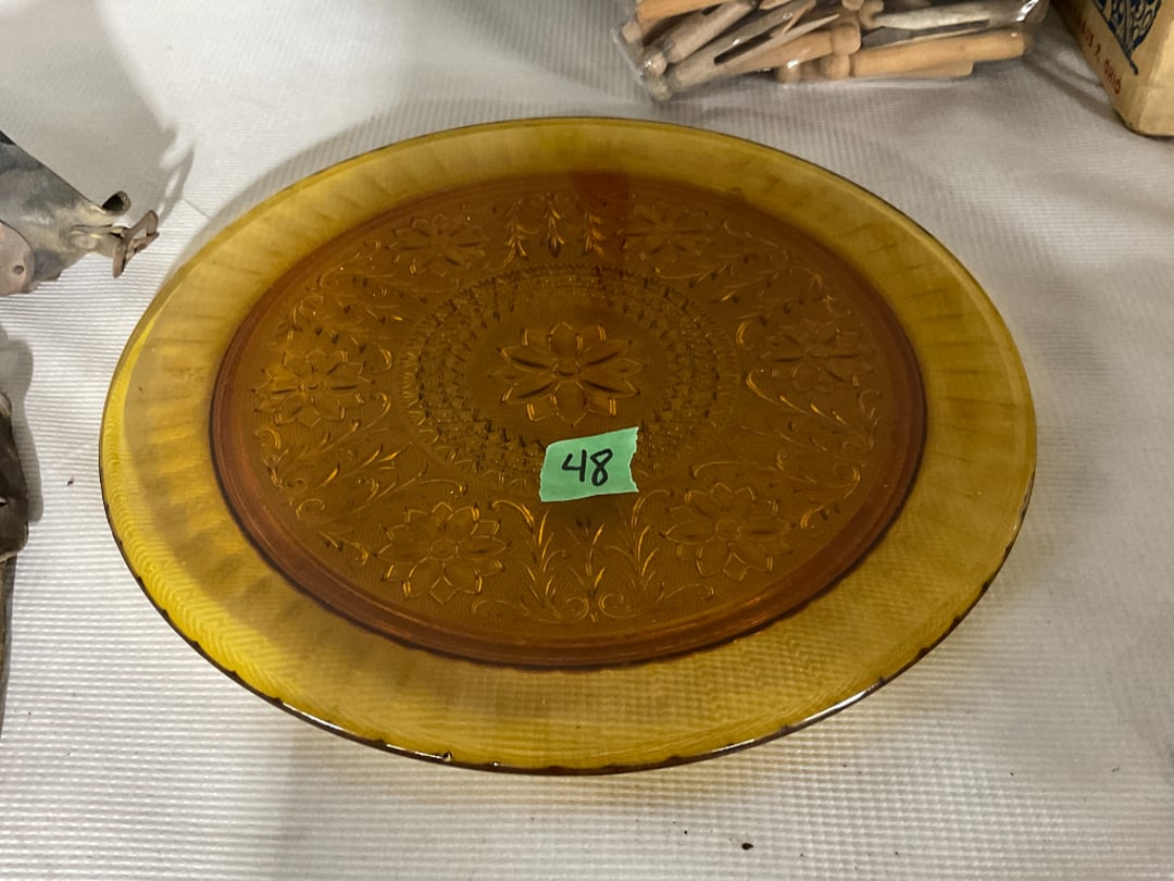 •Vintage Tiara Sandwich Amber Glass Cake Plate