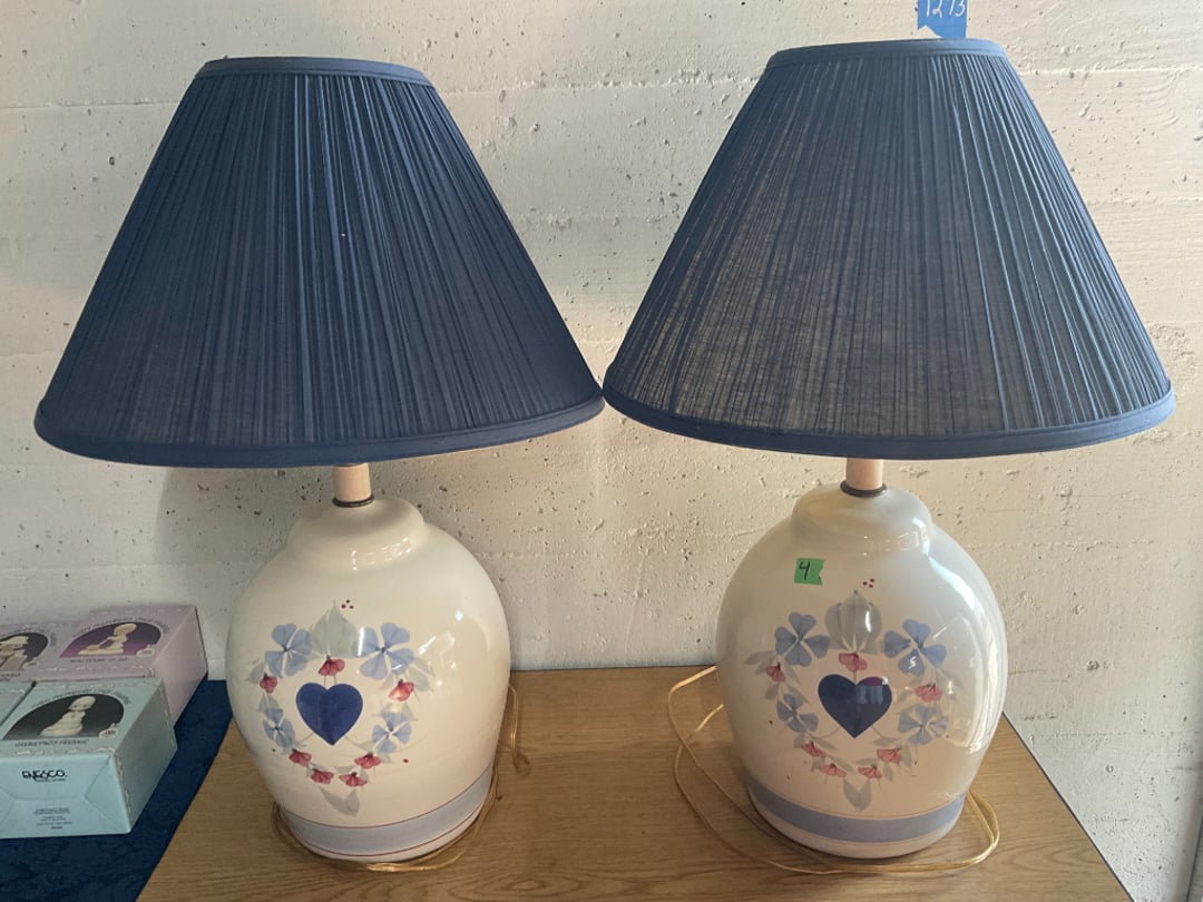 •(2) Mid-Century Pottery Jug Lamps