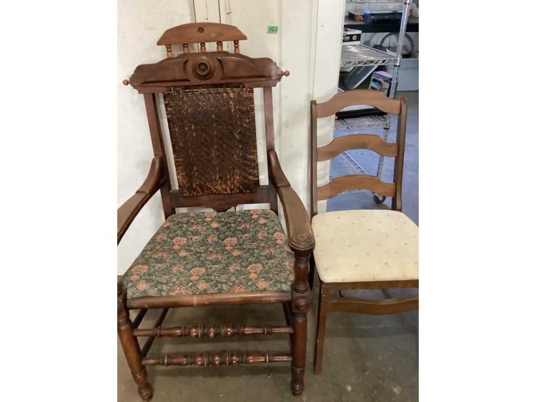 •2 Folding Chairs & Cabinet Front