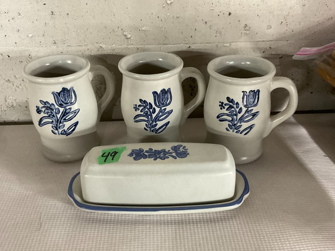 •Pfaltzgraff Stoneware Coffee Mugs & Butter Tray