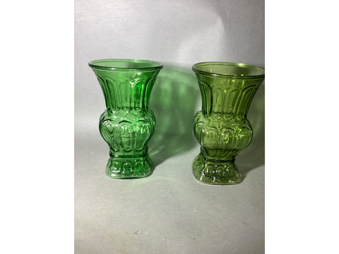 •Green Hand Blown Glass Jug W/ Ice Chamber