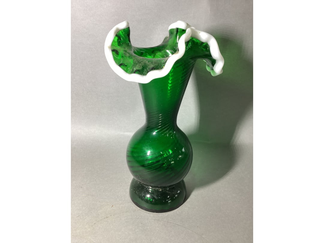 •Hand Painted Fenton Custard Ruffle Vase