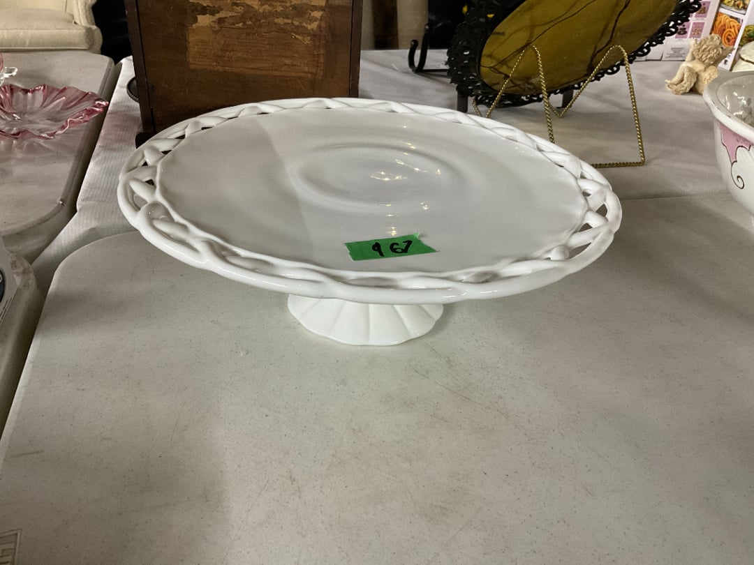 •Milkglass White Patterned Footed 7" Bowl
