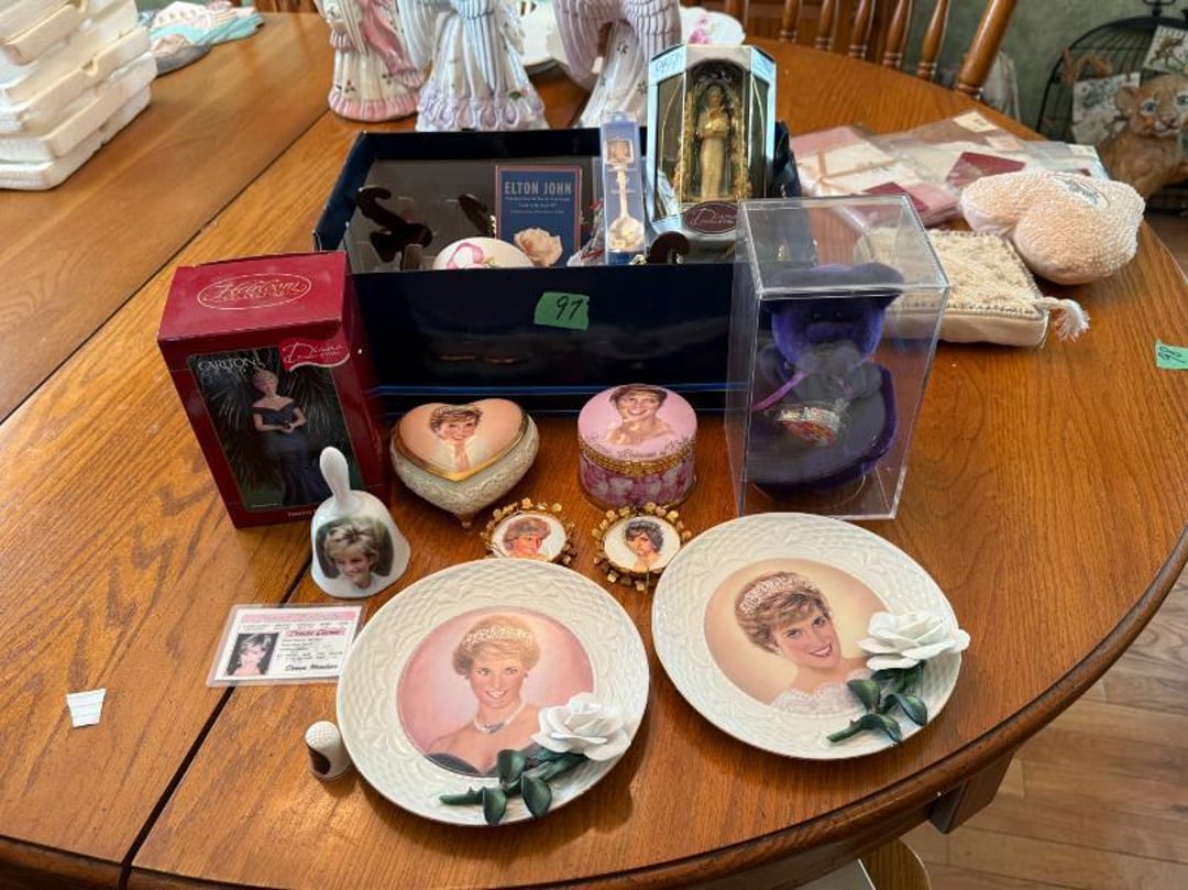 32"x38" Framed Pic & (2) Metal Scounces, 3-Piece Bedroom Set, Set Of Collector Plates, Record Albums,, Porcelain Christmas Scene, Nativity,, NTec Quartz Infrared Heater, Books, Bathroom Items, Gray Cabinet , Shower Stool, (2) Totes & ShrinkPak , Elmhurst High School 1968/1969 Year , (3) Collectable Dolls , Dolls, Bag & Lamb Chops Puppet, Shaggy Quilt Kit, Cabbage Patch &, Cabinet, Leather Shoes & Picture, Eurosolar Facial Sun Lamp & Vaporizer, Various Sewing Machines, Glass, , Cabinet W/ Heavy Lamp, Swiss Horn & Decorations, Angel Collection & Lamp , GE VCR, Tapes & DVD's, Wedding Dress Sz S, Mirror & (3) Pictures, Germgardian Purifier, Little Golden Books, Cabinet, Dolls & Stuffed Animals, Holmes Air Purifier, Petistal Fan, , (2) Rugs, (6) Throw Rugs , Camping -Tent, Air Matress, Chair &, Heavy Lamp, Trunk, Crafts, Deco, Tote, Clothes Rack, Beveled Mirror, Purses, Large assortment Of Frames, Complete Grilling Set, 2-Drawer File Cabinet, Himilayin Salt Foot Detoxer, Foot Bath, Massager, Exercise Equip., Contents-Games, Backpacks,Bowling, Book Case w/ Contents & Deer Pic., Computer Tower, Boxes, Photo Smart,, Contents-Indian Dolls, Plates, Lamps &, (2) Adjustable Office Chairs, (2) Cabinets & Western Decor, Clocks & Frames, Sentry Safe w/ Combo, Clocks, Snow Babies, Inlaid wood Items, Cabinet, Kewpie Doll as Snow White, Record, "I Love Lucy" Episode 39 Collectible , Barbie Loves Elvis Dolls, (4) Lamps & Decor, Carhart Bibs, LLBean Jacket, Ironing , Ridgeway Grandfather Clock, Floral Sofa , Figurines-Looney Tunes, Rabbits, Mice, Matching Coffee Table & End Table, Large Assortment of Potted Greenery, Vintage Washstand, Mirror, TY Animals, Hallmark "Howdy Doody" & Ornaments, Metal Stand, lamps, Bird Cage, Angels,, Pioneer DVD Player , DVD's, CD's &, Cabinet w/ Contents, Fern Stand, Collasable Table, Lamp, Sofa Table 53", (4) Metal Trucks, Large Christmas Bell & Bow, Princess Diana Doll Case/Trunk, "The Peoples Princess" Diana Doll, Princess Diana Bride Doll, Porcelain Portrait Doll, Princess Diana Portait Baby Doll, Princess Diana Dress, Princess Diana The White Suit Assemble, (2) Princess Diana Dresses, (2) Princess Diana Outfits, (2) Princess Diana Formal Dresses, (2) Princess Diana Outfits, Princess Diana Books, Magazines,, Wall Decor & Mirror , Large Assortment Of Decorations, (5) Framed Wall Hangings, (3) Large Pictures, Metal Sheep & Animal Figurines, Large Assortment Of Decorations, Candles, Sewing Baskets, Coal Bucket, Cabinet, Cartoon Glasses & Mugs, Vintage Toddler Chair, China Cabinet, Diana: Queen Of Hearts Series-, Diana: Queen Of Hearts Series-, Portraits Of Diana -(6) Plates-1998, Princess Diana Of Whales-(4) Plates, Diana Princess Of Wales-(3) Plates w/, Diana Princess Of Wales-(3) Plates w/, Diana Princess Of Wales-(3) Plates w/, Princess Diana Memerobilia, (2) Beaded Althorp Purses, (3) Lefton China Musical Angels & , Sexton Native Indian Metal Wall Hangings,, Lion Cubs & Lamb Decor, Hutch (Contents Not Included), Cabernet Tabletops Unlimited, Cabernet Grape Stock Pot, Tea Pot,, Political Magazines & Books , Kitchen Table & 6 Chairs , Glass Victorian Style Dial Phone, Quartz Clock, Wall Clock, Bird Sign , Electro 9219GB Phonograph Stereo & End Table , Red Copper Square Skillet , Pressure Cooker & oil-less Fryer , Camel Matches & Lighters in Tins, Serving Knife, Cake Knife, Change, 4' Bench , Pictures, Decor, Ceramic Pots , Clothes Bin W/ Rugs, Hot Pads, Tables Cloths, Foodsaver, Blender, Tins , Metal Yard Art w/ 2 Tin Signs , 6 Corning Ware Casseroles , Pyrex Blue Lace Doily Casserole , Corelle Ware dish set , Oil Lamps & Candle Stick Holders , Hand Tools , Power XL Smokeless Grill Plus , Cooking Supplies , Cook Books & Coffee Mugs , Pasta Pot, Salt Pepper, Ice Bucket, Cookie Jars, Timer, Decor, Misc , Cooking Utensils & Skillet, , Ball Jars, Candy Dish, Glass Knob, Cast Iron Decor , 2 Cast Iron Sheep , Cast Iron Rabbit Door Stop , Cast Iron Mouse Door Stop , Cast Iron Cat & Dog , Cast Iron small Animals , thermometer, lantern & China items, Dep. 56 Tea Pot , Glass Bowls & Pie Pans , Cast Iron Cookware , Cleaning Supplies , Oval Baker Pan, Grinder, Pie Plate, Shaker , Knife Set, Cutting Board, Serving Plates , 10K Class Ring Lowes, 2 Pocket Watches, Misc Jewelry, Bottle Openers, , Brass & Metal Decor , Madam Alexander Scarecrow & 4 McDonalds Plates, Graniteware & 8 crystal serving glasses , Baking sheets, Hand Towels, misc., Serving Trays & VTG Tins & Match holders , Signature Sewing Machine, Telephone, Lights, Clock, power Cords, , Stainless Canning Pot (looks New), Butane Fuel, Box Knifes, Planters & misc. , Salt & Pepper Shakers & Decor , Polaroid Camera, Minolta Camera , Shelf, Graniteware Decor, & Potato Bin , Christmas Decor, Metal Yard Art, Light Bulbs, Bags, Metal Yard Art , Masterbuilt Smoker, Metal Table, Chairs, Bird Bath, Red Pex Tubing, , Fire Pit, Lifetime Tote, Outdoor Cushions , Angle, Wood Bench, Wagon Wheel, Yard Art, 16' Fiberglass Canoe , , Chair, Bike, Yard Decor, Misc , Spreader & Sprayer , Chairs, Swing, Yard Arrangements , Master Forge Grill , Swing , Chair, Decor & Yard Sticks , Metal Bird Sign , 3 Live Animal Traps , 40" Lawn aerator , 36" Lawn Roller , 42" Lawn Sweeper , Wagon & Yard Art , Metal Star & lantern , Large Selection of Outdoor Yard Decor , Large Selection of Outdoor Decor, Chairs, Cement Statue , Scrap Wood, Cabinet & Golf Clubs , 12 Gun Cabinet w/ Key , Dehumidifier & Humidifier , Tote Of Afghans & Blankets , 2 Totes Cutting Boards, Plasticware, Misc, , 22 Gallon Shop Vac , Pelonis Dehumidifier , Walker, Toilet Seat, Bed Handle , Haier 7 Cu Ft Chest Freezer , 6 Totes Full of Fall & Christmas Decor , 3 Empty Totes , 3 Plastic Shelving w/ Contents , Lockable Cabinet , Small Gas Grill, LP Tank, Chairs , Shelf, Canning Jars, Ice Cream Maker, Misc, , Yard Art items/Decor , Several Totes Full of Fall & Misc Decor , Racking Shelves (Heavy Metal) , Fisher Price Toy & Toy Frame , Tower Fan, Large Selection Of Christmas Decor , Racking Shelves 