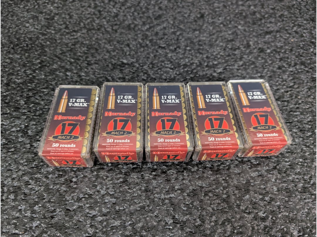 •250 Rounds Hornady 17 Mach 2 17 Grain V Max