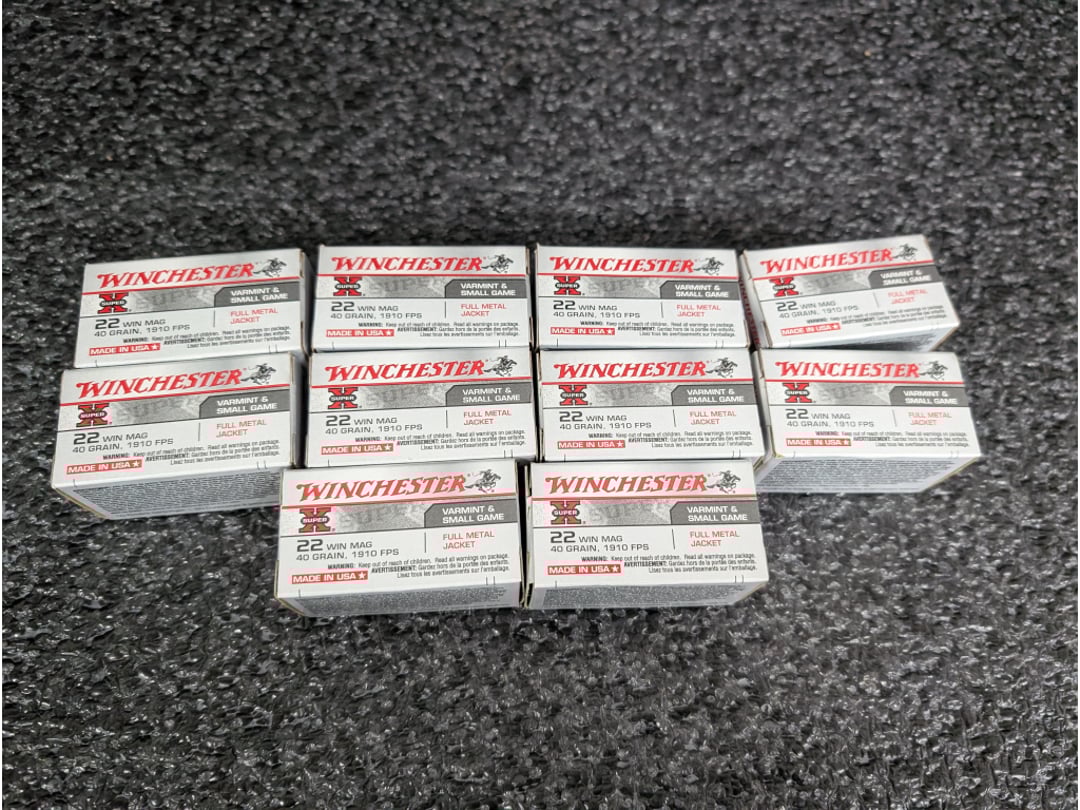•500 Rounds Winchester 22 Win Mag 40 Grain FMJ