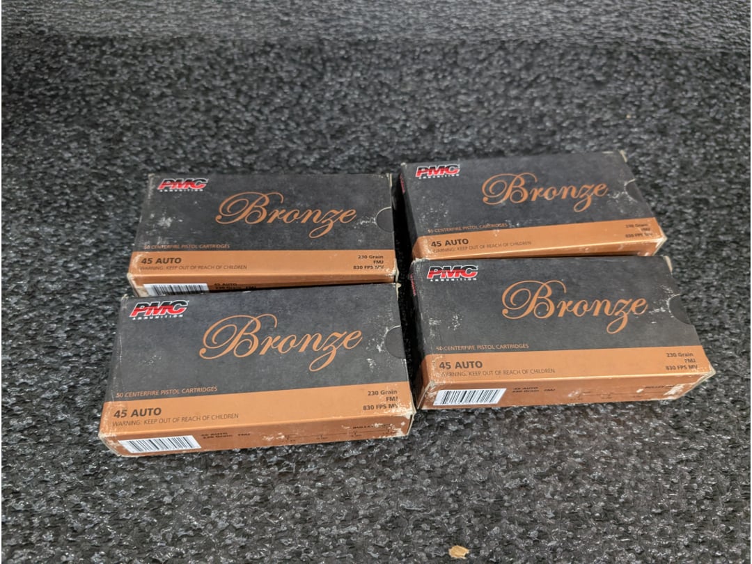 •200 Rounds PMC Bronze 45 Auto 230 Grain FMJ