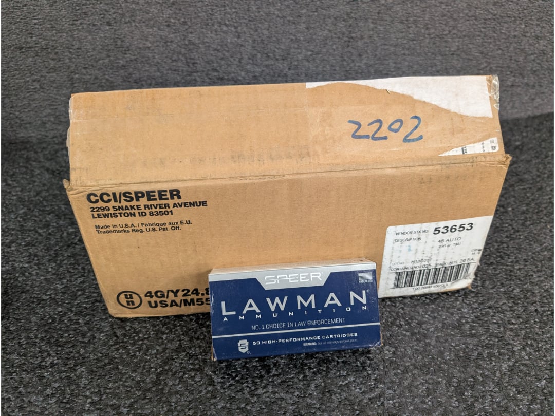 •1000 Rounds Speer Lawman 45 Auto 230 Grain TMJ