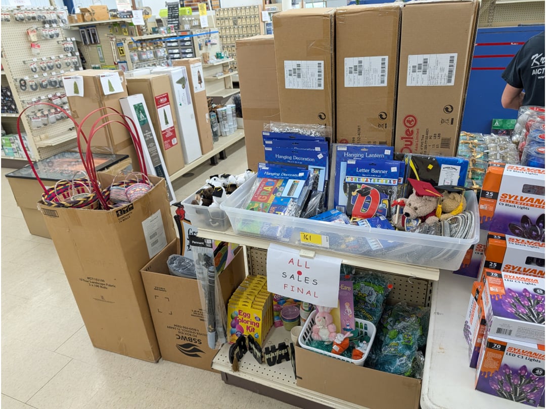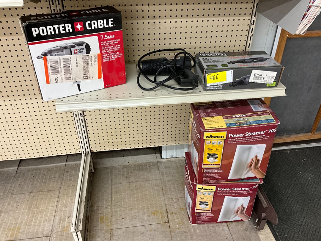 Over 800 + lots of NEW Inventory including Power & Hand Tools, Lawn & Garden, Large Selection of Paints & Stains, Hot Water Heaters, Plumbing & Electrical, Home & Auto Repair, General Household Items, Small Appliances, Seasonal Decor, Store Fixtures & Much More!