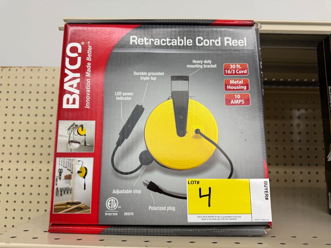 •Bayco 30' Retractable Cord Reel (Lot #4)