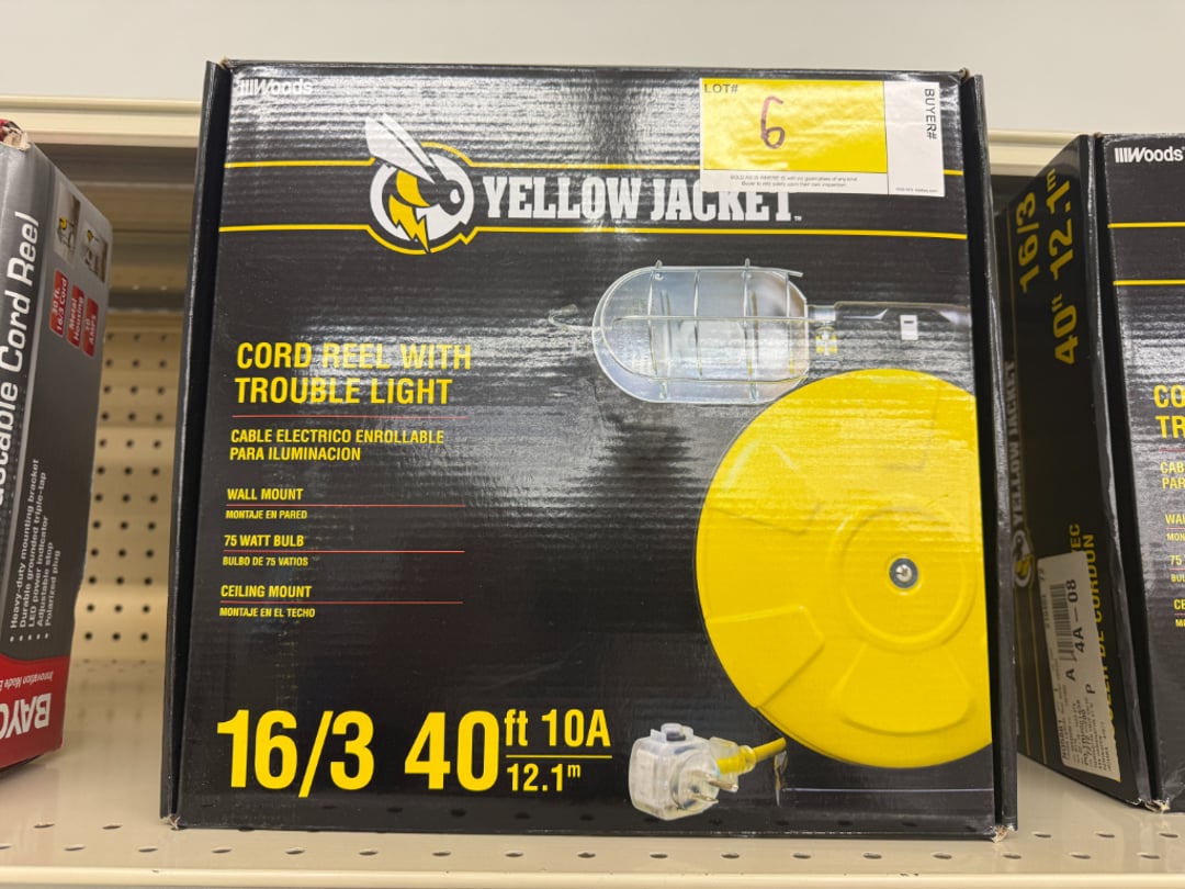 •Yellow Jacket 16/3 40' Cord Reel w/ Trouble Light (Lot #6)