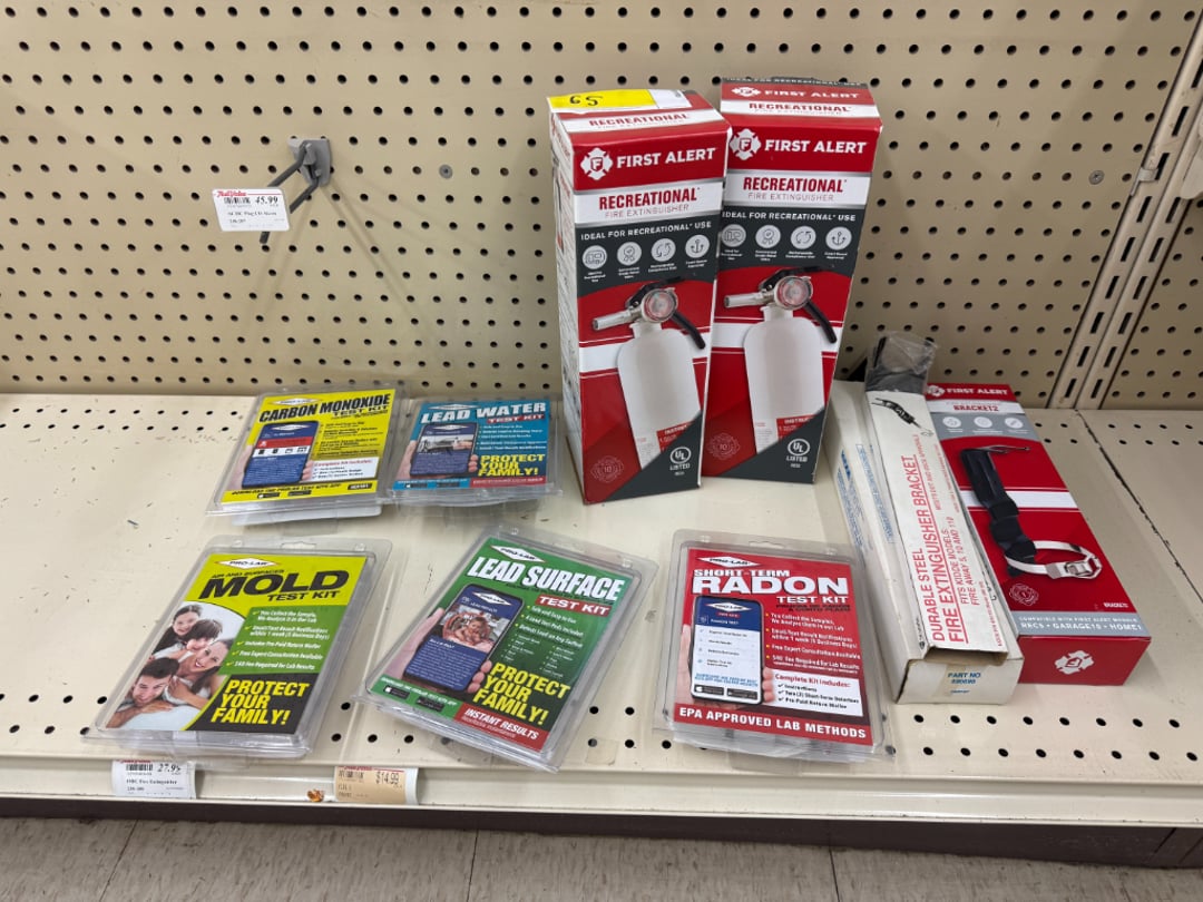 •Smoke and CO2 Detectors, Extinguisher, Mold and Lead Test Kits (Lot #62)