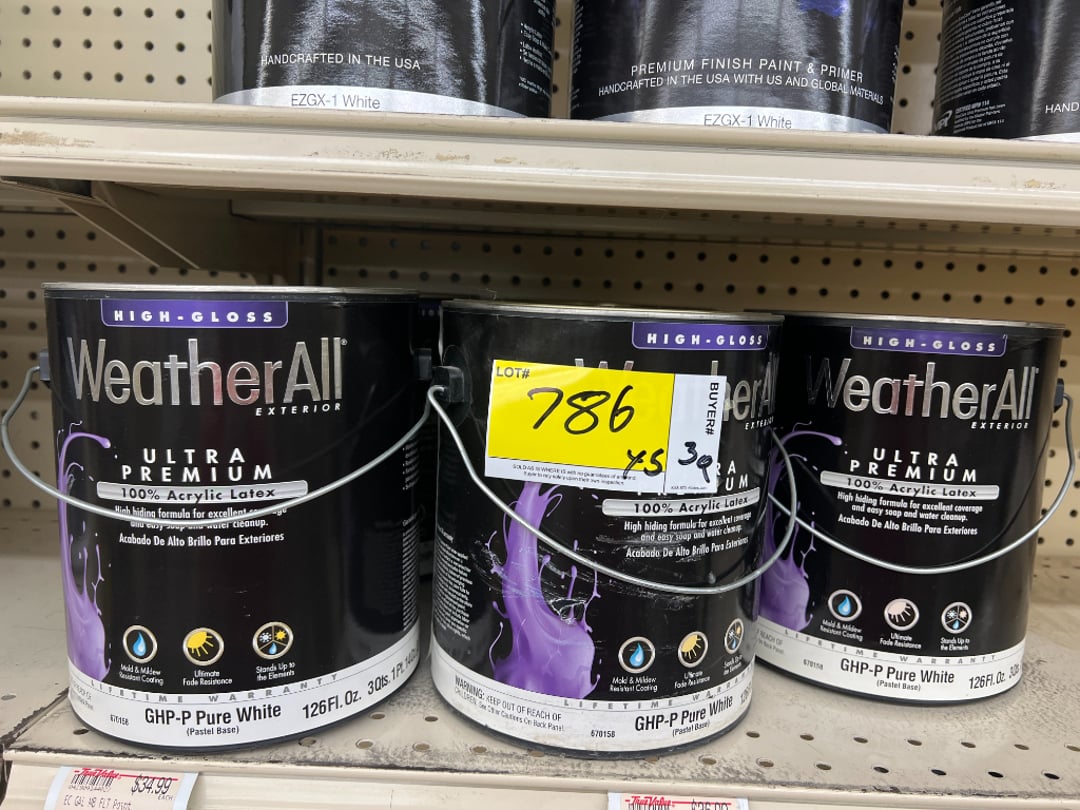 •High gloss acrylic latex exterior paint (Lot #786)