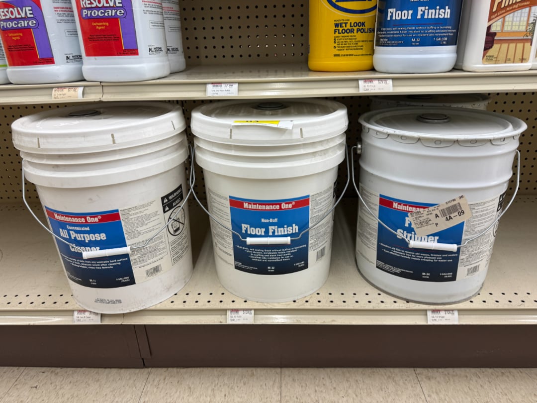 •Maintenance One Cleaner, Floor Finish, Floor Stripper (Lot #83)