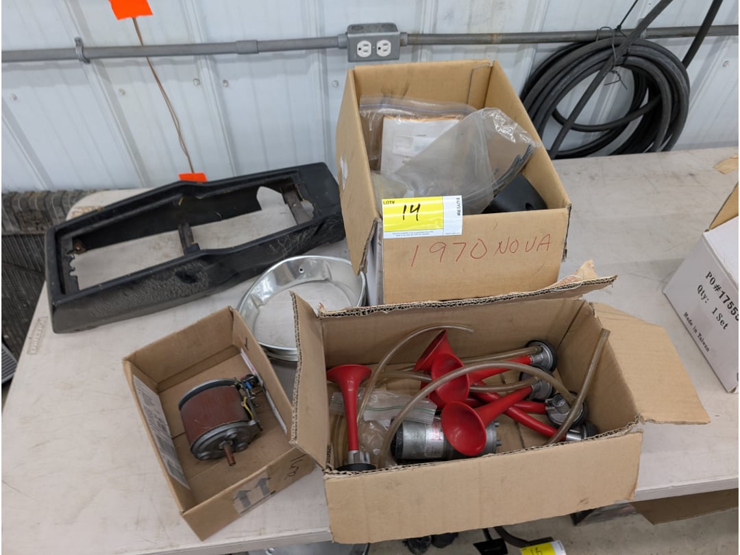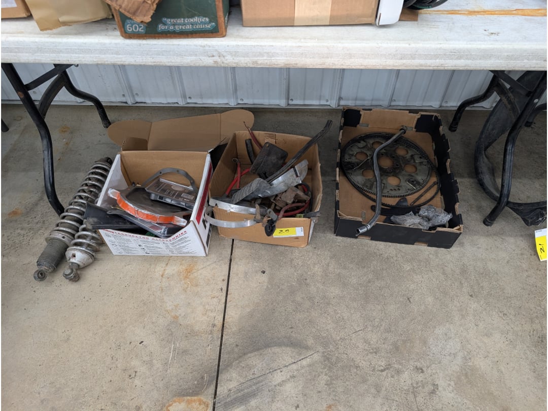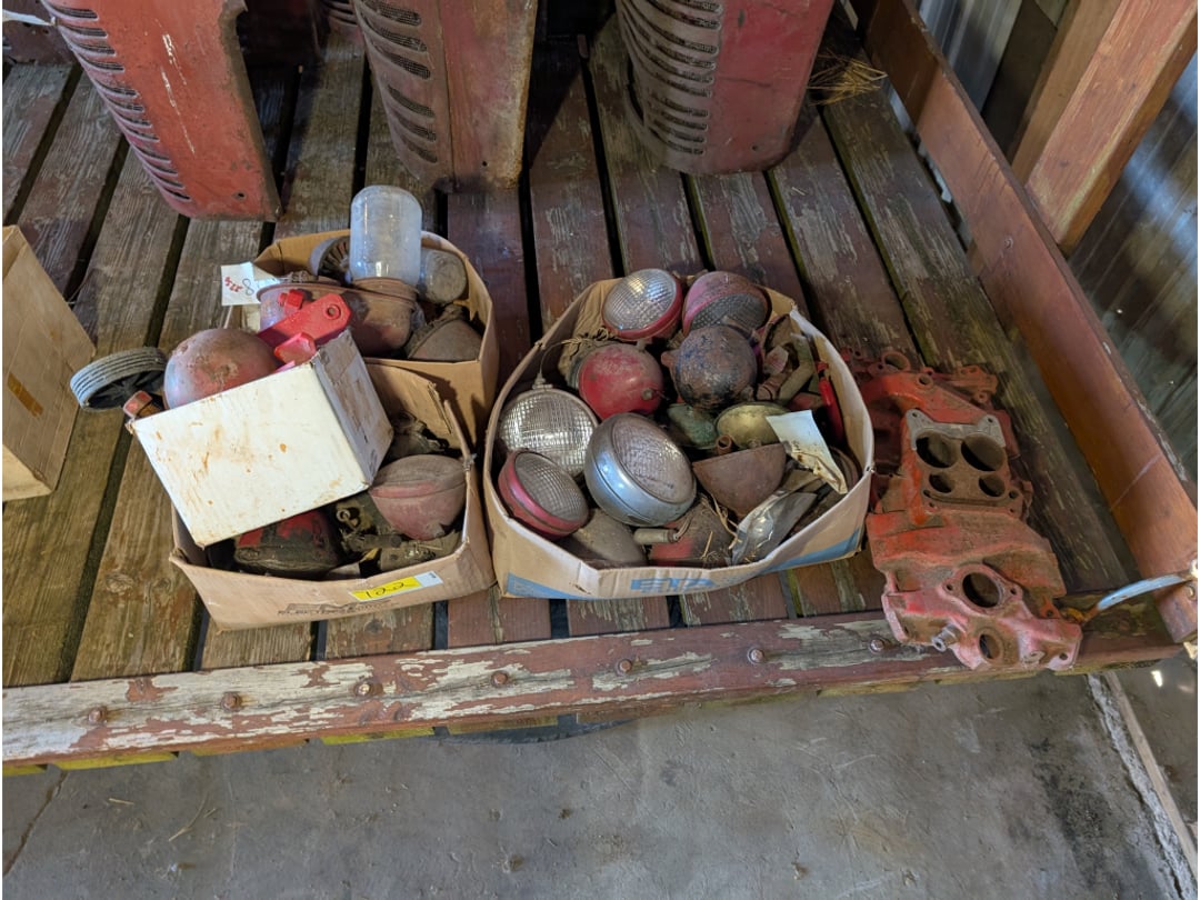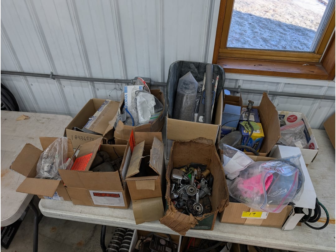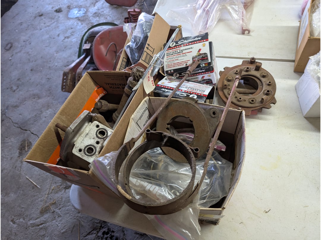 66' Chevelle Shifter Column , 1966 Chevelle Door Liner, 1966 Chevelle Drive Shaft, 1966 Chevelle Seat Brackets, 1966 Chevelle Fans, Rocker Arms, Fly Wheel & More, 1966 Chevelle Door Skins, 1966 Chevelle Door Trim/Parts, 1966 Chevelle Parts-Heater Core, Gaskets, Alternator,, 1966 Chevelle Heater Box Housings & Grille, 1966 Chevelle Radiator Fan, Brackets & Wiring, 1966 Chevelle Radiator (Unused), 1970 Nova Intake Manifolds & Air Filter , 1970 Nova Parts-Center Console, Mirror, Horns & More, (2) 1970 Nova Air Filters, 1970 Nova Pedal Assembly & (2) Struts, 1970 Nova Hub Caps (NIB), 396 Camshaft, 1970 Nova Parts, 1970 Nova Parts-FlyWheel, Shocks, Carb Adapt Kit & More, 1970 Nova Fan Shroud , Various 1970 Nova Parts, 1970 Nova Oil Pan, 1970 Nova Power Brake Booster, Various 1970 Nova Trim, Hedman 1972 Nova Headers , Various Nova Parts- Grille, Trim & More, SS Steering Column, 1970 Nova Brake Lights, Steering Wheel, Trim & More, 1970 Nova Seat Bekts, 1966 Chevelle Heater Core (Unused), 1970 Nova Gauge Clusters, Chevy Small Block & Big Block Gasket Covers, Edelbrock Chevy Intake Manifold, 1968-1972 Novs LH Door Skin , Pypes 2 1/2" Reducer (Unused), 1966 Chevelle SS Dash Cluster , 1966 Chevelle Radiator (Unused), 1966 Chevelle Fuel Line, Various 1966 Chevelle Brackets , 1966 Chevelle SS Grille, 1966 Chevelle Exhaust Manifolds & Control Arms, 1972 Nova Parts, 1968-1972 Nova Trim (Unused), 1970 Nova Parts, 1970 Nova Parts- Disc Caliper Brackets& Disc Brake Spindles , 1966 Chevelle Parts-Oil Pan, Intake Manifolds & Cooling Fan, 1970 Nova Intake Manifold, 1966 Nova Parts, Jack, Trim & More, Door Seals & Vehicle Suspension Part, 1972 Nova Parts-Air Filters, Alternator, Starter & Water Pump, 1968 Chevelle Fly Wheel , Chevelle Dash Cluster, Chevrolet Motor Division Hub Caps, Dash Speaker, Reflectors, Brackets, Air Suspension Speaker & (2) Radios, Alternator , 2 Ford Radios , Assortment Of car Parts, Assortment Of car Parts, 1969-1974 Nova Kick Panel , Chevy Visor & Windshield Wipers , Gaskets & Various Car Parts, 1970 Nova Parts, 1968-1979 Nova Black Carpet , 1968 Chevelle Exhaust Header , Distributor, & Car Parts, 1970 Nov Dash Cluster , Nova Z28 Grille, Trim, , 1970 Nova 396 Pass. DR. Exhaust , Rims & Caps , SS 396 Dash , 1966 Chevelle parts , 1966 Chevelle Torque Converter , 1970 Nova Passenger Door , 1970 Nova Misc. Parts , 1979 Camaro Brake Lines , 3 GM Bell Housing , Corvette Hood & Misc Body Parts , Corvette Trim , 1968 M-2- Wide Box Transmission , 1969 M-20 Wide Box Transmission , Corvette Side Windows & Glass, 1970 Nova Front, Rear, Side Glass , M-20 Transmission , M-20 Transmission , 1970 Nova Transmission , 1970-72 Nova Front & Rear Bumper , 1970-72 Nova Front & Rear Bumper , 1970-72 Nova Front & Rear Bumper , Bumper , 2 NOS Seats , Chevelle 1 Passenger 2 Drivers Door , 2 NOS Seats, Nova Front passenger Drivers Fender , 1970-1972 Drivers front Fender , 1970-1972 Passenger Front Fender , Cow Hood , 1970 Nova Hood , Farmall McCormick MD , (6) IH Hoods , (6) IH Hoods Model H & MD, Curt 4,000 Trailer Hitch , (6) IH Clam Shell Fenders, (7) IH Clam Shell Fenders, IH PTO Covers & Fender, Farmall Tractor PTO Covers, Fuel Tank & Grille , Kohler Twin 17 Engine & A Arms , Tractor Seat, Light & Various Parts, (6) Tractor Steering Wheels, Air Hose W/ Reel, Tool Box & Tractor Parts, Tractor Lights & Intake Manifold, 1966 Chevelle Frame , 1999 Normanco Equipment Trailer , 1995 White River Bass Tracker w/ Trailer, 1993 Sylvan Sunchaser Deck over Boat W/ Trailer , Farmall Nose Grille, (2) Farmall Nose Grilles, (2) Farmall Nose Grilles, (2) Farmall Nose Grilles, (2) Farmall Nose Grilles, Farmall Nose Grille, (2) Farmall Nose Grilles, Various Farmall Tractor Parts, Various Tractor Seats & Parts, 3 IH Tractor Seats , Various Tractor Parts, Various Farmall Battery Boxes & Covers, Farmall PTO Cover, (3)NOS Farmall Tractor Lights, (5) NOS Farmall Tractor Lights , (2) Tractor Tachs , Tractor Air Cleaners, Tractor Parts, , Moto 4 Four Wheeler, Craftsman Gold Push Mower, Vintage Weed & Brush Cutter, Chainsaw w/ 20" Bar , Cub Cadet Z Force 0-Turn Mower, Roto-Hoe Chain Drive Tiller, Roto-Hoe Chain Drive Tiller, Simplicity Sun Star Garden Tractor , Cub Cadet Mower W/ Blade, Polaris Scrambler 4-Wheeler, New Holland 312 10' Manure Spreader , 54 IH , PTO Generac 120/240v Generator , 1953 McCormick Farmall Super C , 1949 McCormick Farmall C , 1957 McCormick Farmall 350 , 1954 ? McCormick Farmall Super M , 1954 McCormick Farmall Super H , 1957 McCormick Farmall 230 , 1941 McCormick Farmall H , 1955 McCormick Farmall 300 , 1954 McCormick Farmall Super H , 1953 McCormick Farmall Super H , McCormick Farmall 340 , 1954 McCormick Farmall Super M-TA, 1953 McCormick Farmall super H , 1954 McCormick Farmall Super H , McCormick Farmall Super M Diesel , 1952 McCormick Farmall Super M , 1970 Chevrolet Nova 2D, 1980 Runabout Meyers Fisherman 14 Boat w/ Trailer , Throttle Levers, Piston Set, misc , O Rings, Rubber Gaskets, Bumpers, (2) Unused Tractor Lights & Air Cleaner Bowl, Various Tractor Parts-Fuel Line, Hydraulic Pump, Carburetors, Wiring & More , (2) Vintage Oil Cans, NOS Tractor Seat, Piston Heads, Welding Helmet, Springs & More, International 300 Utility Tractor Fenders, 2 radiators , Various Flywheels W/ Belt, Farmall Starters & Alternators, IH H Muffler, Various Farmall Tractor Parts, Various Farmall Tractor Parts, 13 Various size Rims , Tractor Tires w/ Rims , Various Size Tires , 2 Firestone 15.3-38 Tractor Tire & Rim , 6 tires , Wheel Weights, T Post, Cultivator , 2 Bottom Plow, wheel Barrel, Axle , Howse 3-Point 60" Pull Behind Tractor Bush Hog, 1-Point Cub Disc, King Kutter 3-Point Potato Plow, 2-Point Carry All, 3-Point Ripper, 54" Cub Blade, 3-Point Rear Blade 7', 2-Point 3 Bottom International Plow, 2-Point Pull Type Tractor Plow, 2-Point Pull Type Tractor Plow, Roticul Deluxe Tiller, 3-Point Flail Mower, Cub Front Blade 54", 2-Point Rear Blade 6', 3-Point Rear Blade 8', 2-Point Rear Blade 6', Farmall Cub Tractor , In