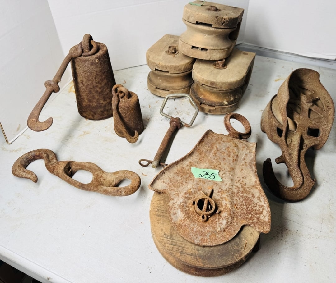 •Antique pulley, weights & more (Lot #255)