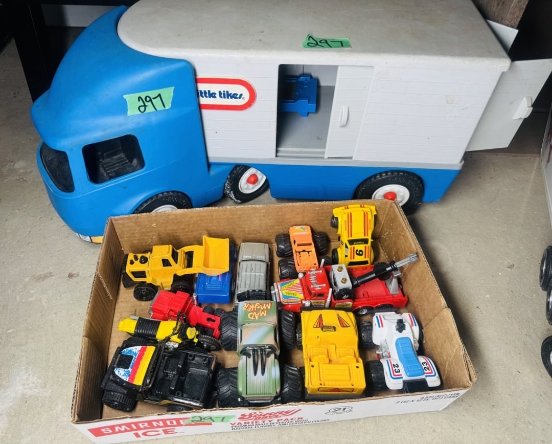 •Little tikes semi, flat of toy vehicles (Lot #297)